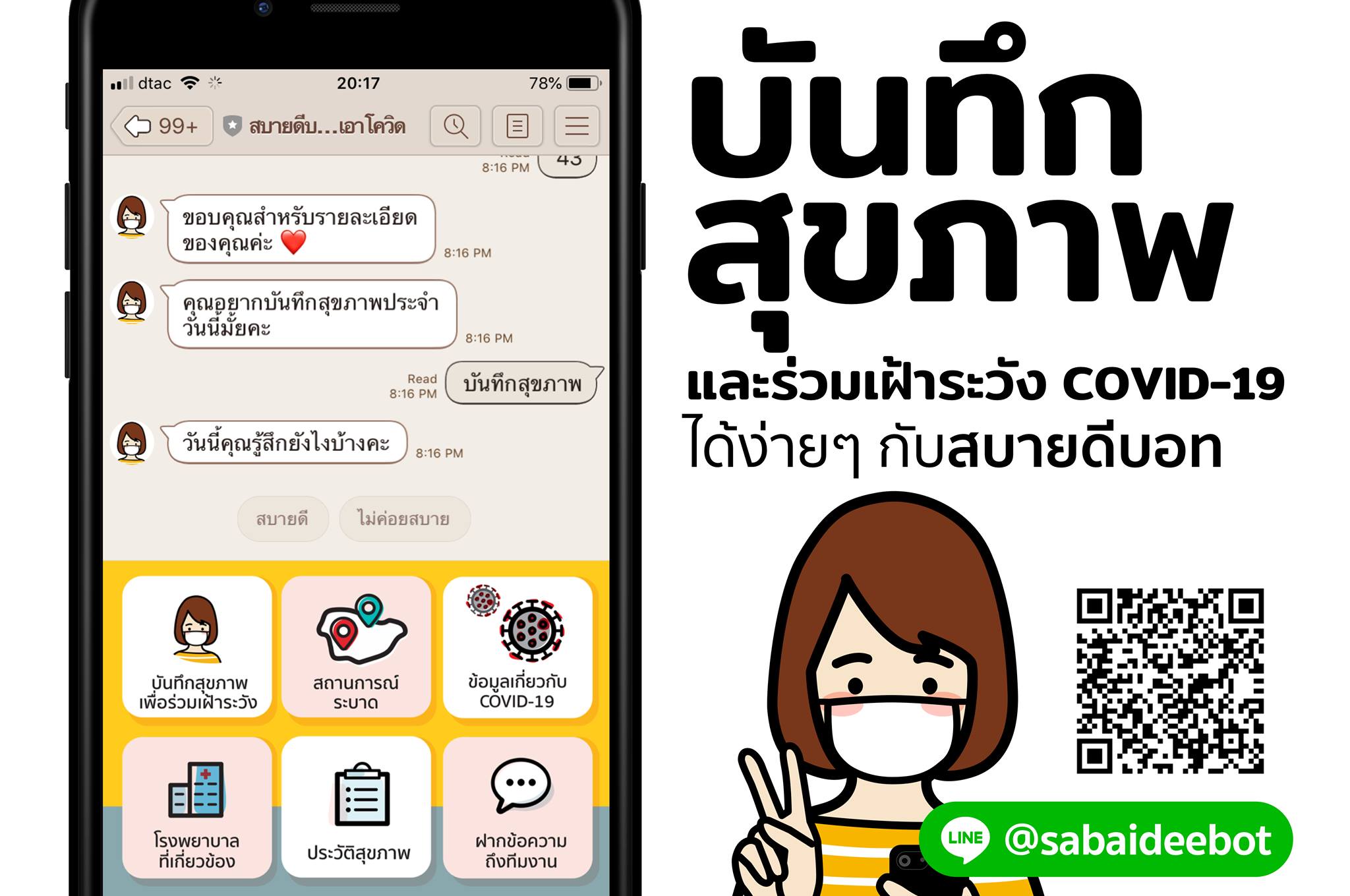 All of our technology is open-source and we use a LINE chatbot for self-reporting symptoms (LINE is the #1 social messaging app here and 99% of smartphone users have it). We're at 25K public users and we're in a few trials with hospitals for PUIs. Thailand is currently in South Korea like situation, but this is likely to change in the next week. We're hoping Sabaidee has major impact on flattening the curve, and helps hospitals spend less time on managing PUIs and more time on saving lives.
