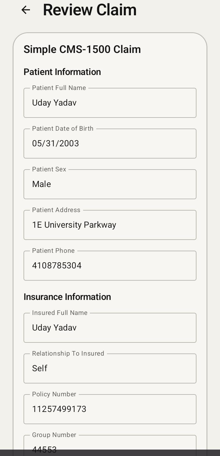 We built the frontend as an Android app in Kotlin using Jetpack Compose for the UI. We used Firebase Authentication for sign-in and account creation, and Firestore to store user profile and insurance information. For document text extraction, we connected the app to a backend OCR service using PaddleOCR. The extracted text goes into Gemini 3.1 Flash Lite Preview to generate a claim in a simplified health insurance claim format.
