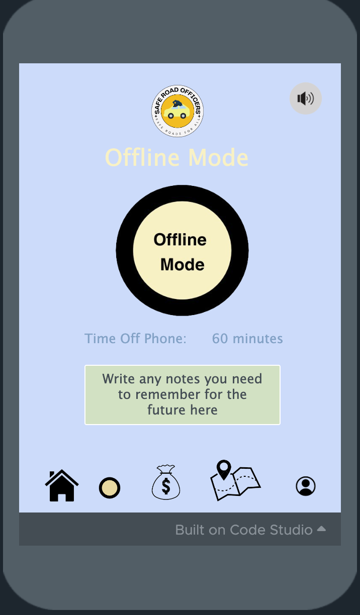 Our app has a lot of features, but our main feature is our offline mode. Unlike "Do not disturb", our offline mode will completely turn off your phone with a popup saying "offline mode" and keep track of how long you stay off your phone. That amount can be redeemed with rewards, so the more you stay off your phone, the more rewards you can earn. Additionally, we have a map system with in-built communication, a profile screen, and additional tips and quizzes for your educational purposes. Alongside that, our app can be translated into 3 languages; Spanish, Arabic, and English. We also have a speaker button that plays the properties found on the screen out loud.