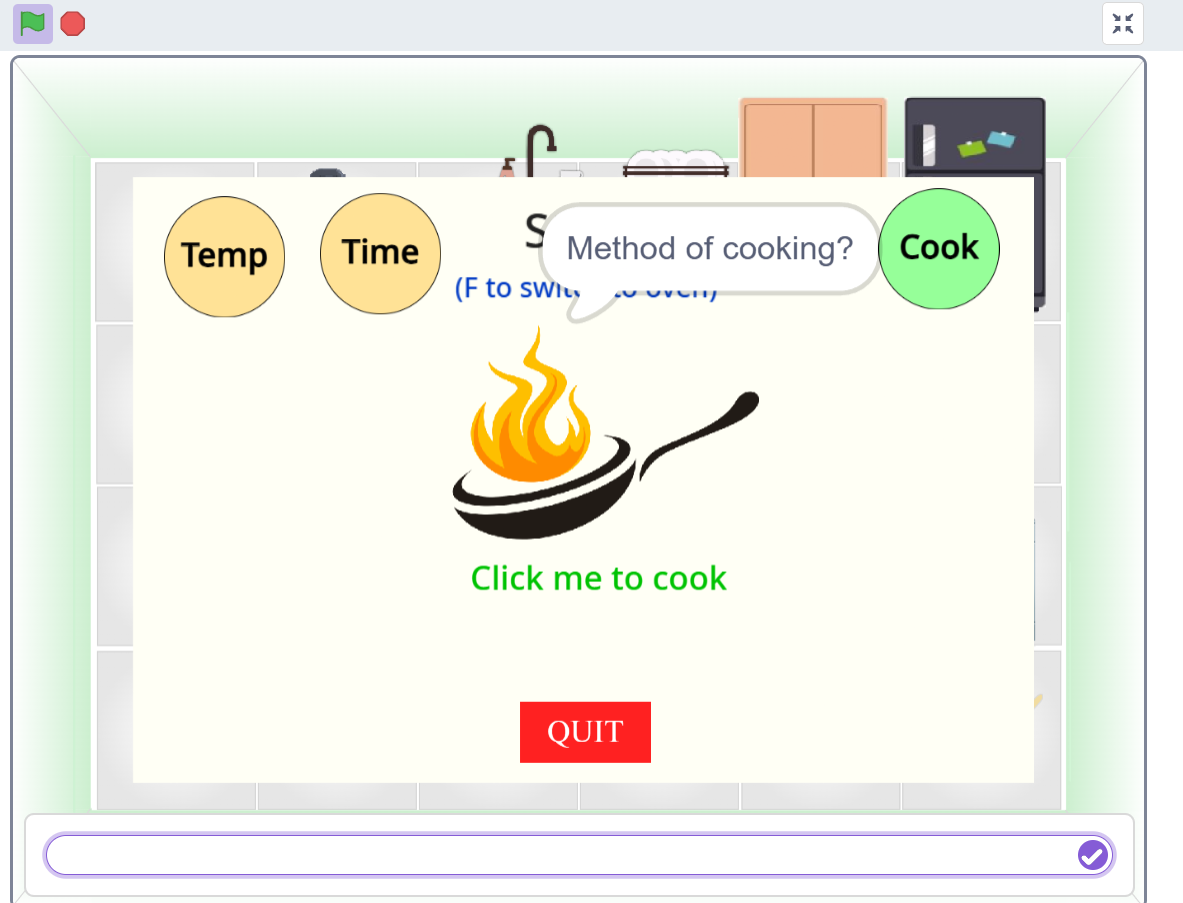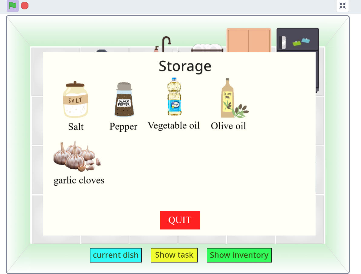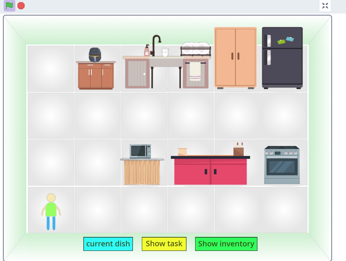 Interactive Game: An embedded Scratch project was developed to simulate a virtual cooking environment where players can drag, drop, and combine ingredients to complete recipe-based challenges, while also learning to identify which foods may cause food poisoning and should be avoided. The game makes learning about food safety more engaging and helps users apply their knowledge of healthy and unsafe foods interactively and enjoyably.