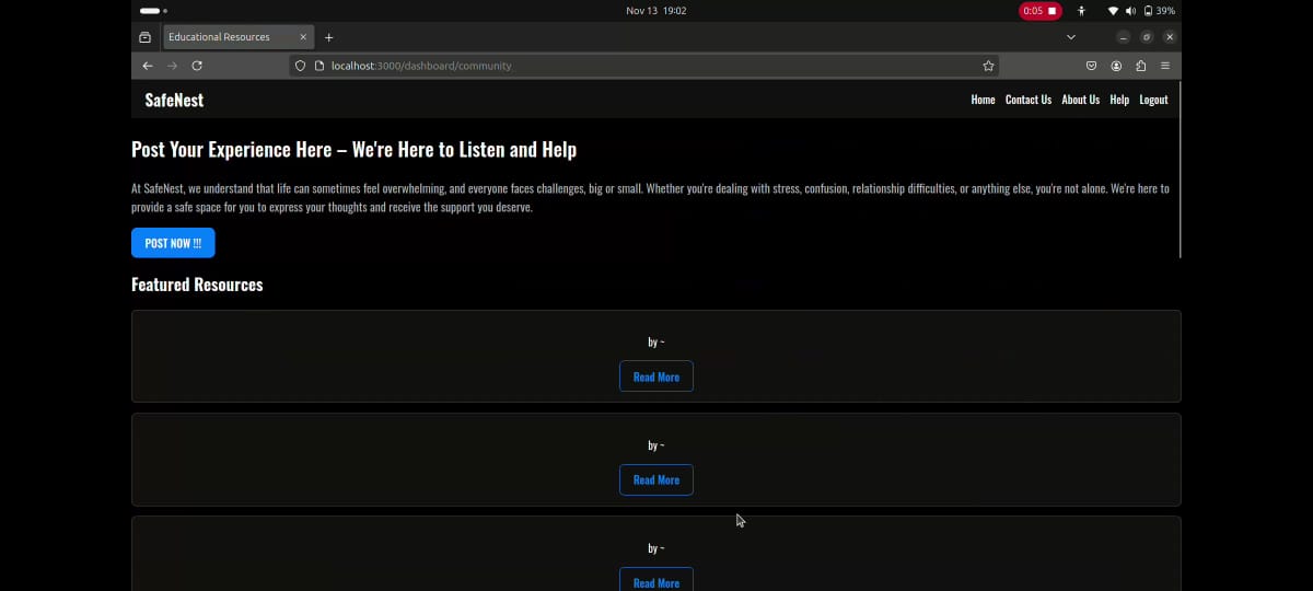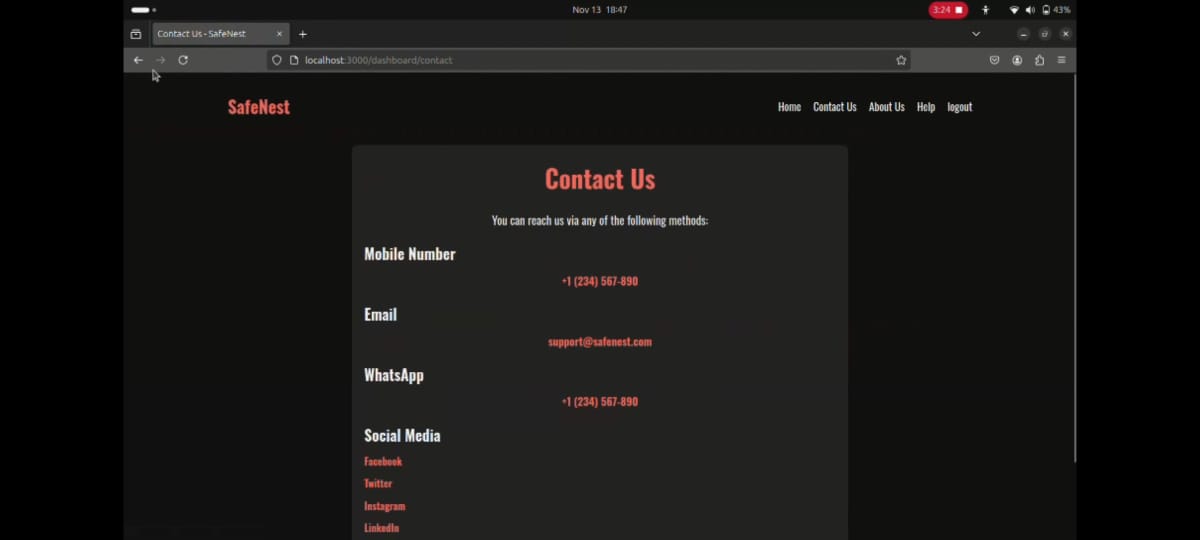- Ensuring Data Privacy: Since SafeNest deals with sensitive information, safeguarding data and maintaining user privacy was a key focus.