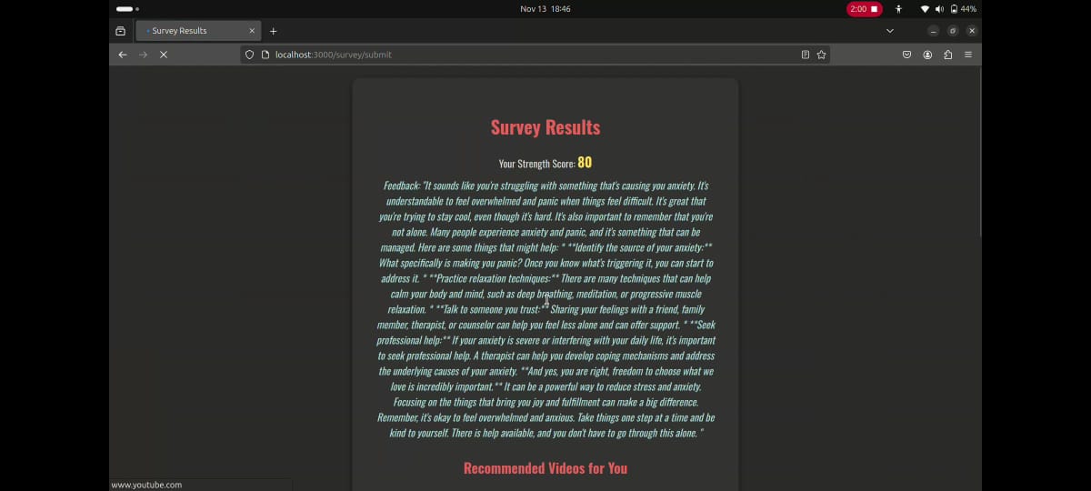 - Emotional Tracking and Support: An AI model that assesses the user’s emotional state and suggests helpful articles.