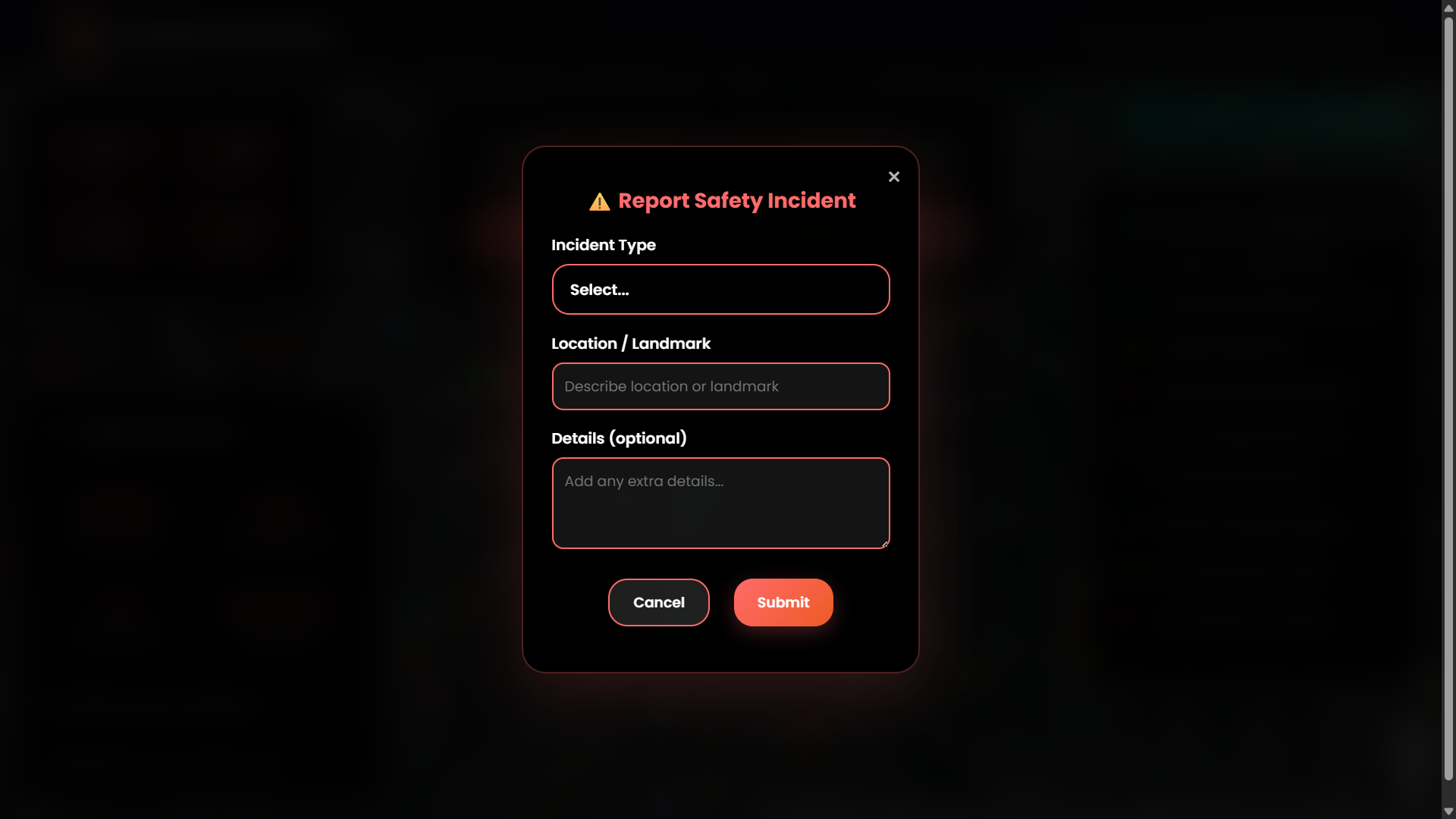Incident Dropdown Selector – Choose incident type (e.g., stalking, no lights).
