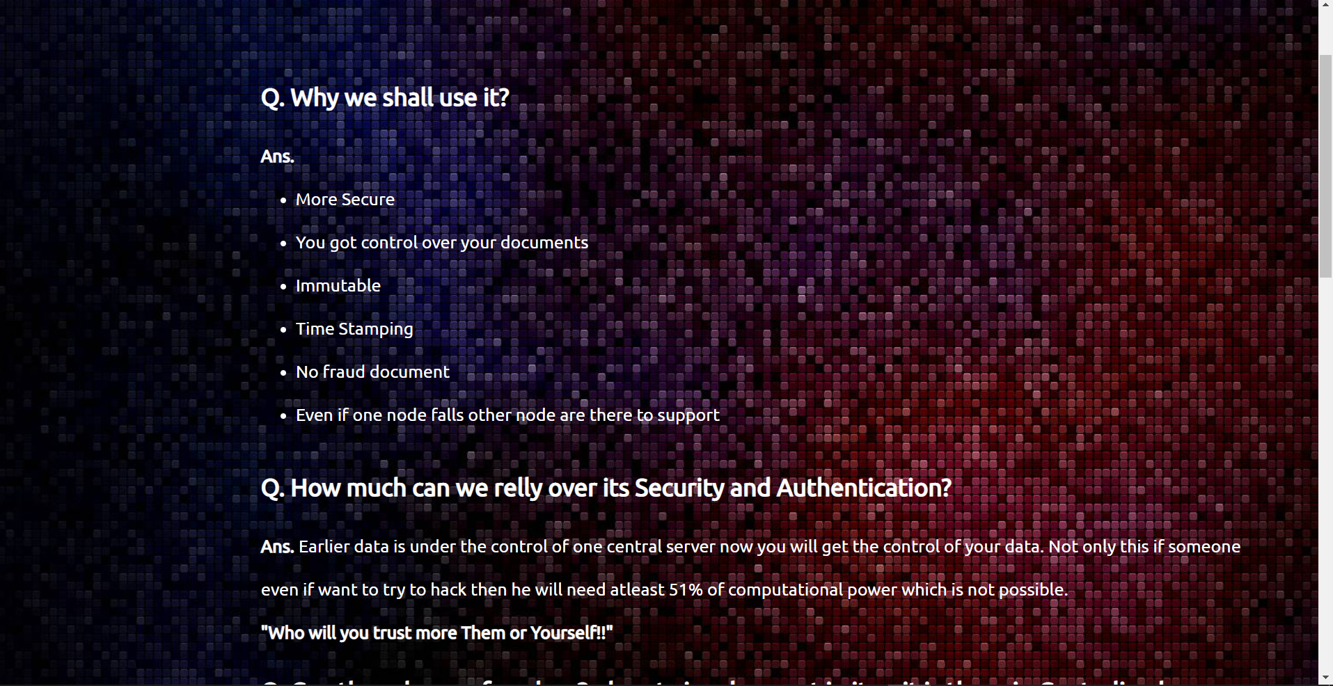 - Securing your documents on blockchain instead of a centralized server which can be hacked