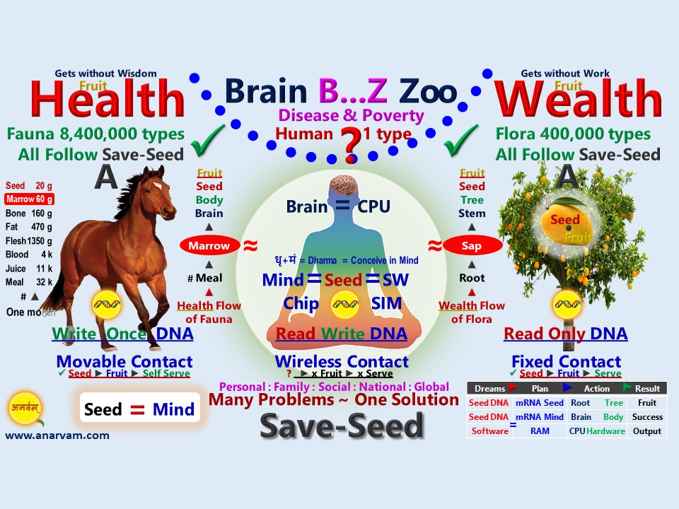 To follow Save-Seed, maintain complete purity in mind, body and deeds while having a relationship with your spouse only. If you are unmarried, then keep complete restraint till the marriage takes place. By following Save-Seed lifelong, one gets good health, wealth, name and fame naturally. Our brain processes the genetic code of our seed DNA through the wireless nerve system for the success of the mind's dreams. Watch the detailed video presentation on 'Save-Seed' to understand this wireless processing of seed and brain on a scientific basis. This video presentation is available for free on the website www.anarvam.com. For a healthy, prosperous and secure future for yourself and your future generations, you must watch this detailed video presentation and seriously understand the importance of the only law of nature 'Save-Seed'. Follow Save-Seed lifelong and inspire others to follow Save-Seed.