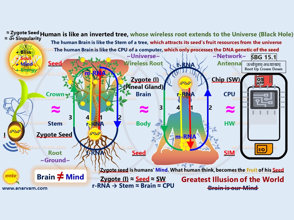 According to the law of attraction, whatever we dream in our mind, it automatically comes true. Still, the dreams of most human beings do not come true, because of a world-wide misconception among scientists and scholars, humans have understood their brain as their mind. In this misconception, those seeds are often destroyed where our mind really lies. If you want to make your desired dreams come true naturally, then you have to understand that our mind is in our seeds and our seeds work subconsciously to make our mind’s dreams come true. Just as the whole tree is hidden in a seed, similarly the whole human is hidden in a seed. That is, our mind is in the DNA of our seeds. The red strand of DNA is our soul as the subconscious mind and the blue strand of DNA is our mind as the conscious mind. Thus, we think through the mind located in the DNA of our seeds, and our brain wirelessly processes the genetic codes of the DNA of the seeds.