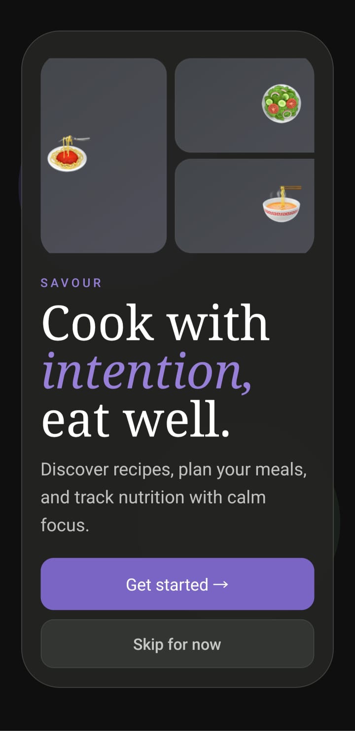 Meal planning is a very stressful yet personalized experience. It can pose risks for people with food allergies and can be especially daunting for those with functional neurodivergence i.e ADHD. While conducting our preliminary market research we realized that most platforms were prioritizing aesthetics and a bare minimum level of convenience hinging on the assumption that every user can flawlessly process long instructions, compare complex meals, or track ever-changing macros. This disregard for cognitive strain inspired us to build Savour, a kitchen assistant that manages and controls the cognitive strain of cooking and meal prepping for people with ADHD.