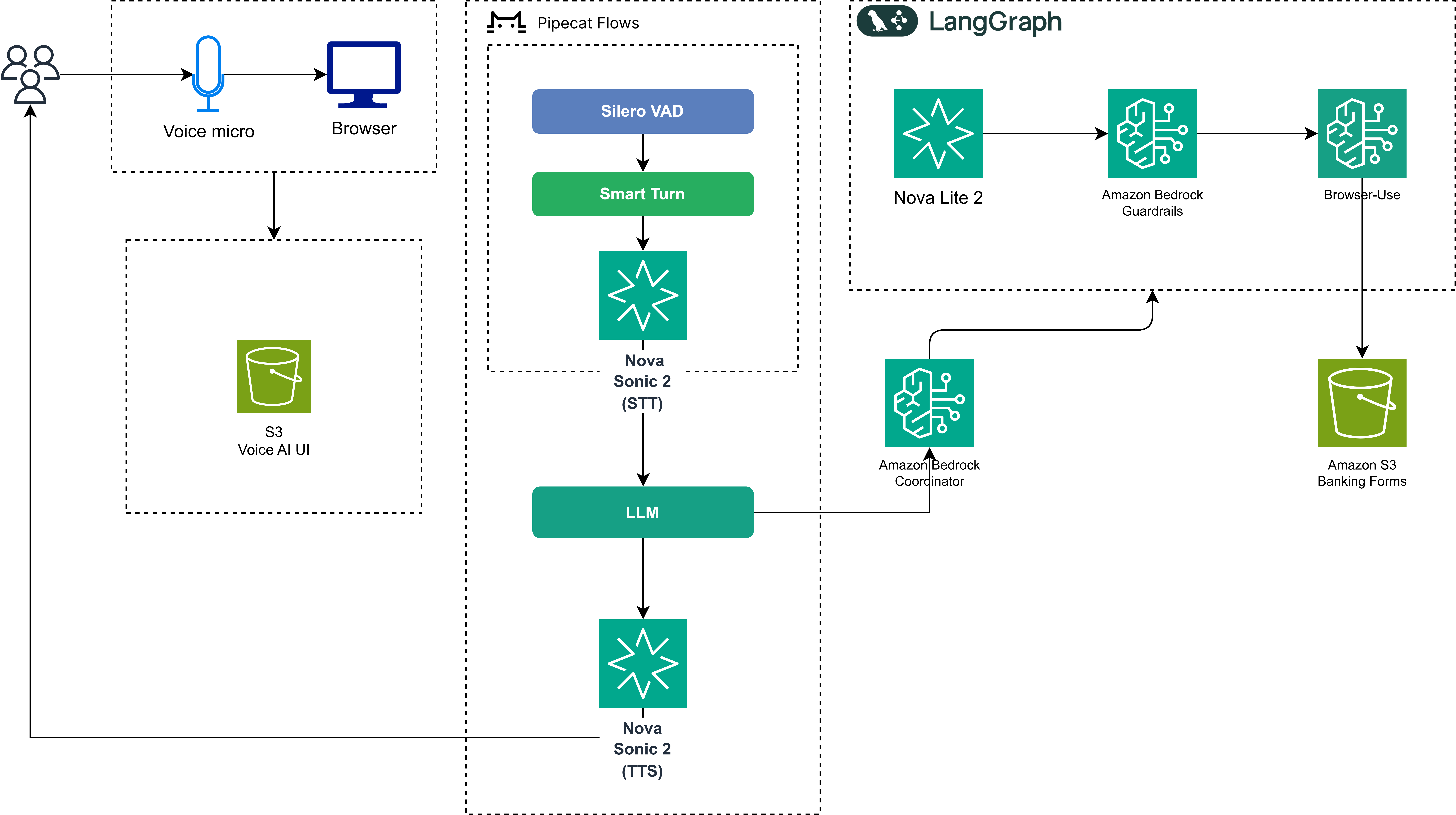 On the voice side, managing WebSocket stability for the Nova Sonic 2 S2S connection over longer sessions required careful handling of reconnection logic and audio buffer management — details that aren't obvious until the pipeline is running under real conditions.