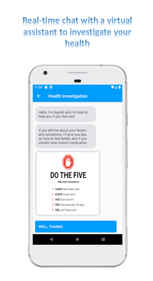 It lets you communicate with a virtual assistant, which would give you some advice and with your method of responses could tell if you might be infected with COVID-19 and if you should get tested