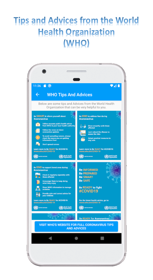 A couple of notifications per day to remind you to follow WHO's safety guidelines and personal hygiene like washing your hands etc.