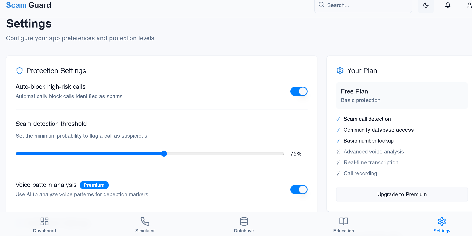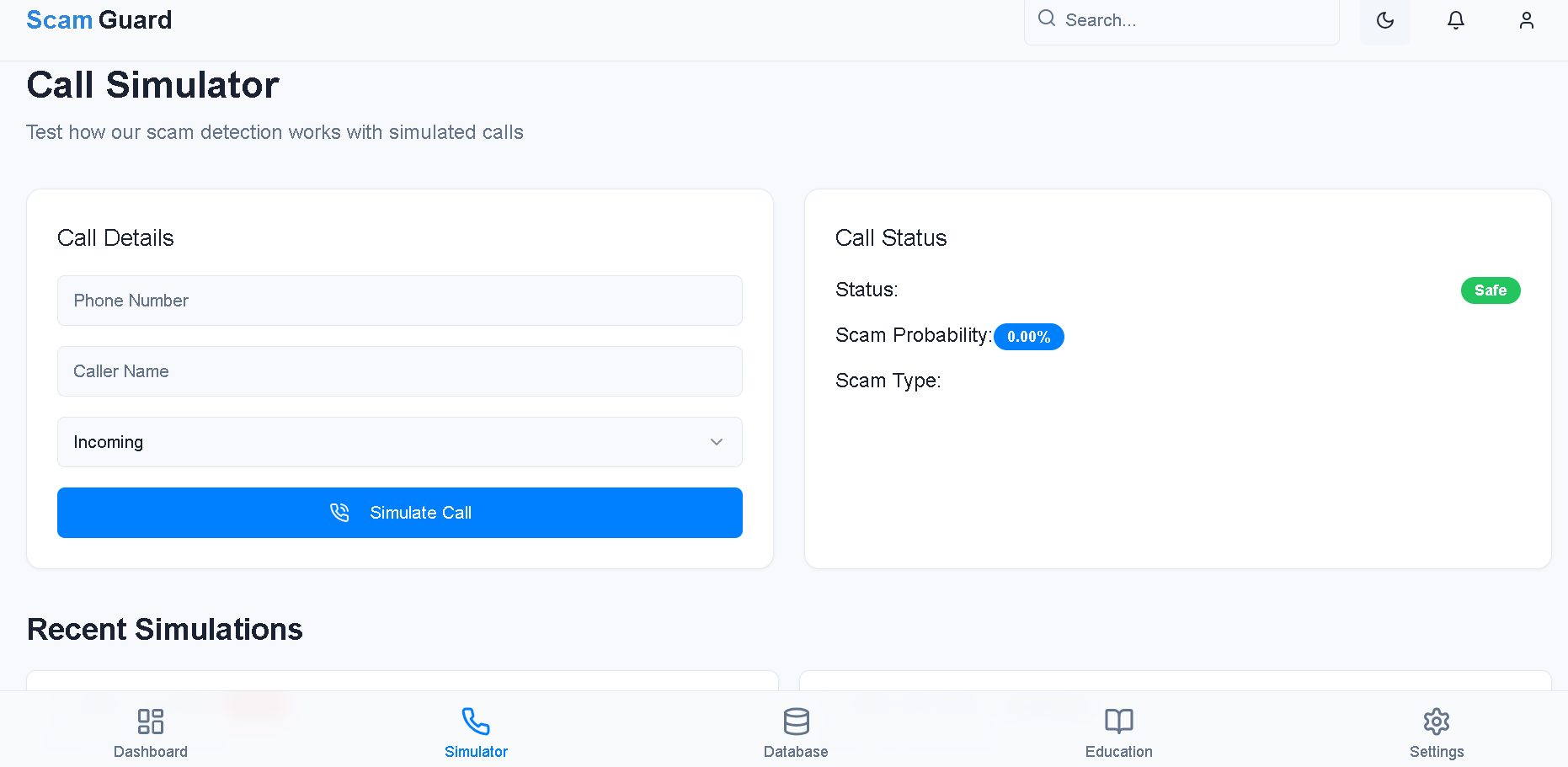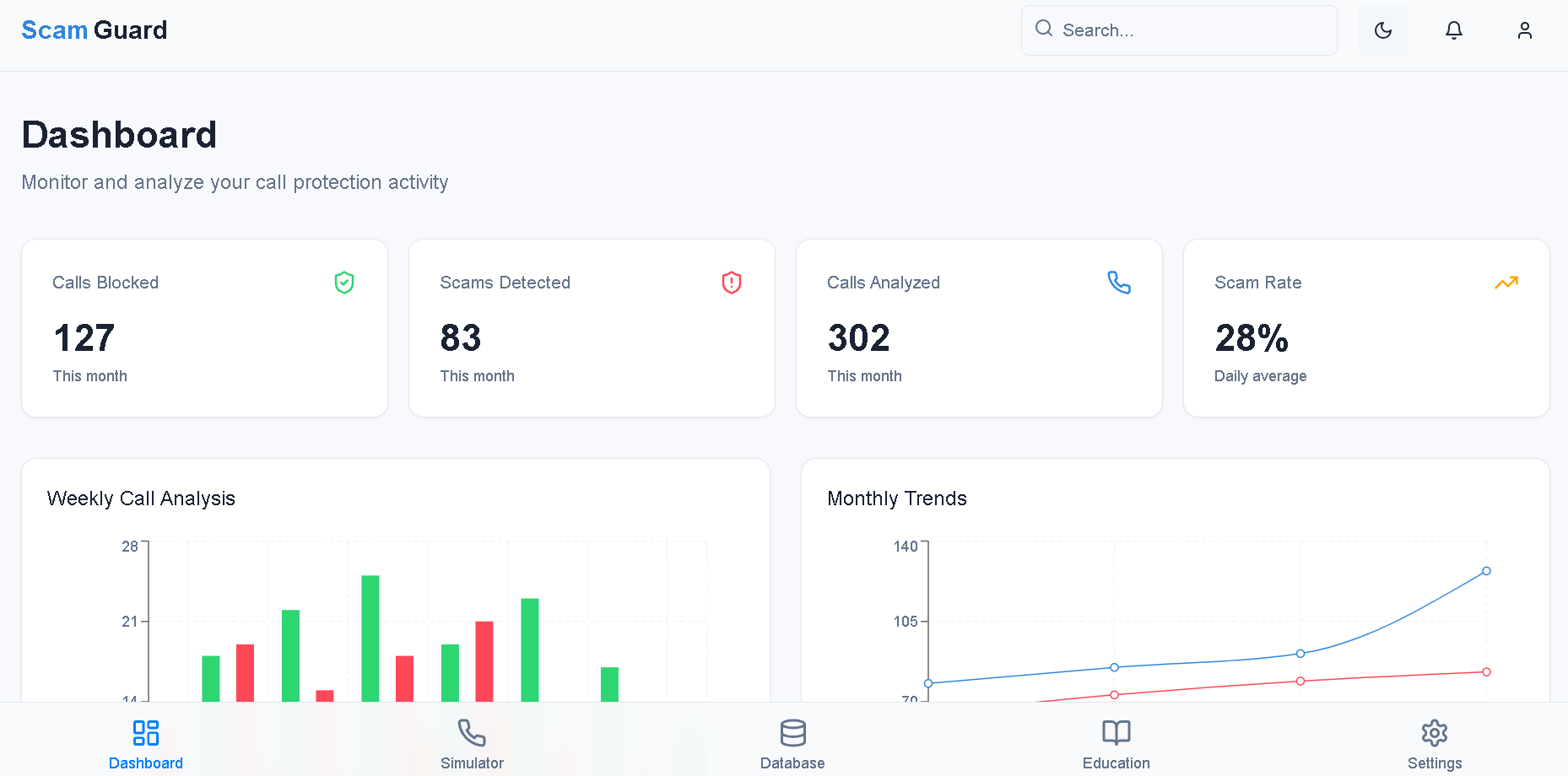 SCAMGUARD is an AI-powered web app that uses NLP, ML, and Speech Recognition to detect and block scam calls in real time, helping users stay safe from fraud and unwanted threats.