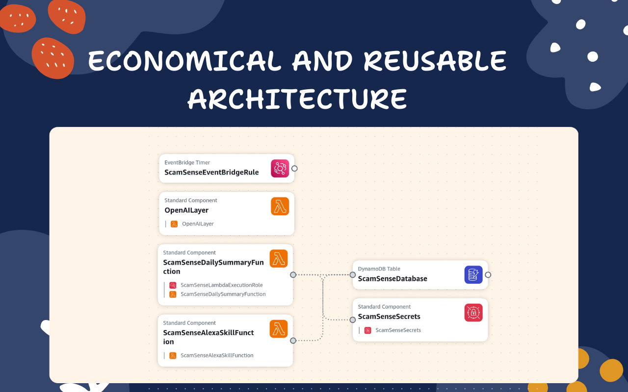 Scam Sense is an Alexa skill that provides daily updates on financial fraud and scam-related news. By integrating with The News API, the skill fetches relevant top stories, summarizes them using advanced AI (using Llama hosted on SambaNova Cloud), and stores the results in a DynamoDB database. Users can then access these summaries through their Alexa-enabled devices, receiving up-to-date information in a clear and concise manner.