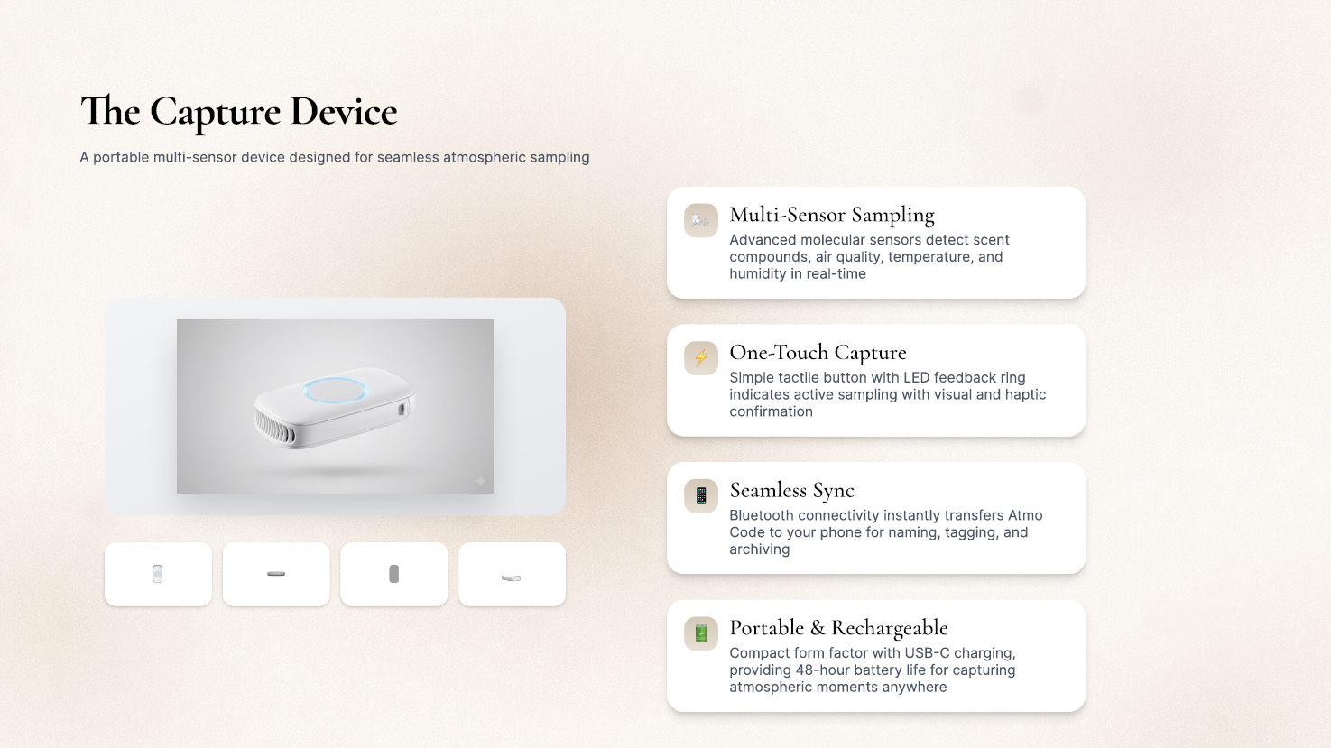 Long term, Scent Print aims to investigate how atmospheric data could become a new digital layer integrated into spatial computing, virtual environments, and connected devices.