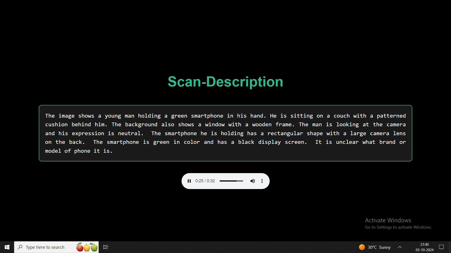 - Future Plan: We are also working on creating an AI-integrated hardware solution using ESP32 glasses, Bluetooth headsets, and other components to assist visually impaired individuals, allowing them to interact with the physical world through AI-powered glasses.