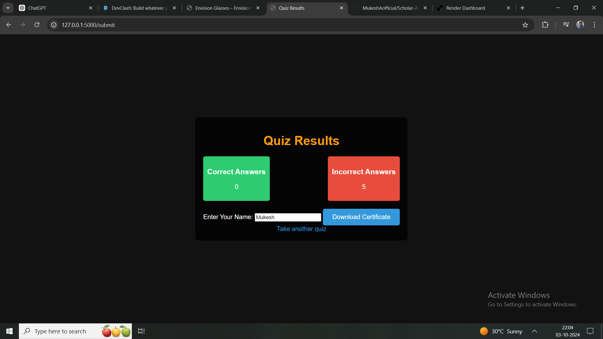 - Deployment and Configuration: The web app was deployed using Render.