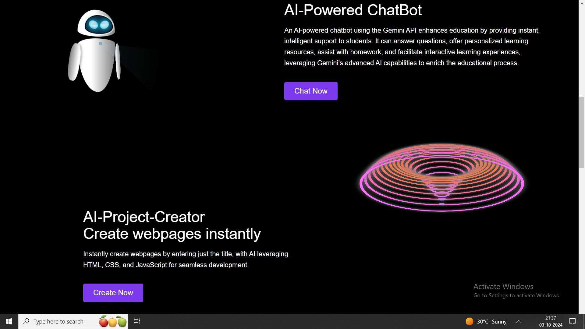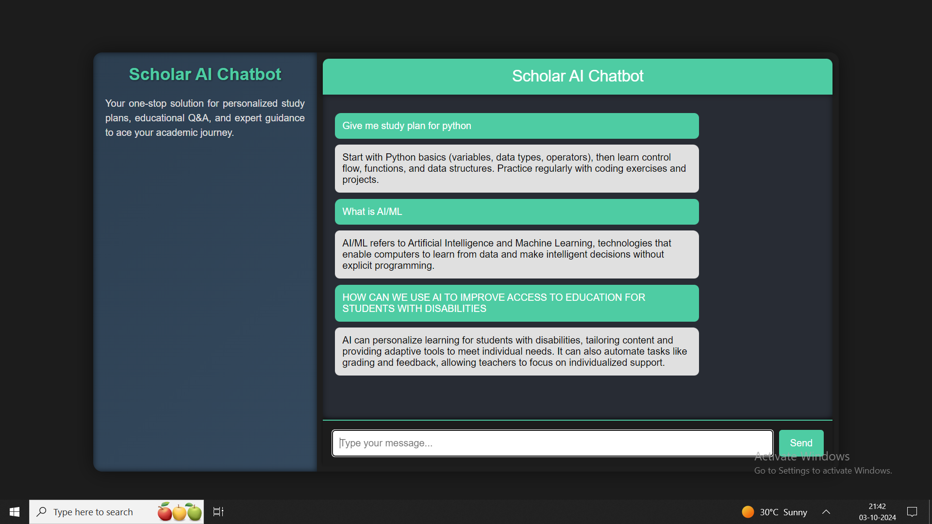 - Educational Chatbot: Provides students with instant answers to their queries using an AI chatbot.