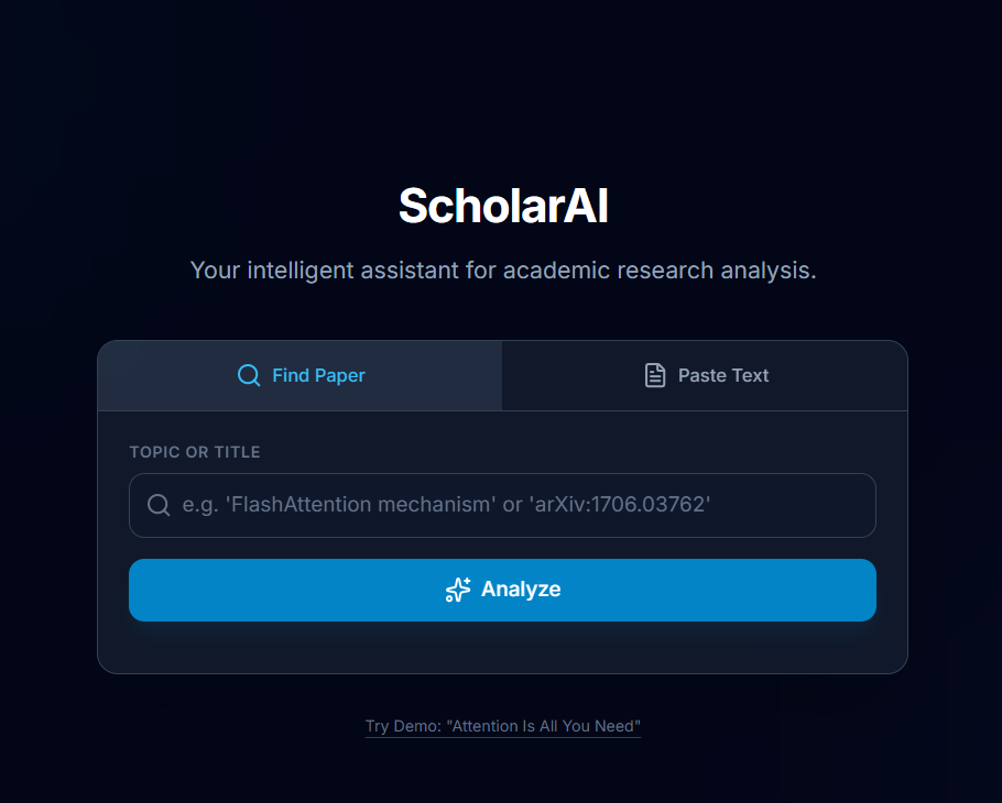 Scholar AI was created to help researchers understand complex academic papers more easily. Many papers are dense and hard to read, and it’s difficult to identify key insights, gaps, or related research. We wanted to make a tool that acts like a research companion, guiding users through papers and helping them learn faster.