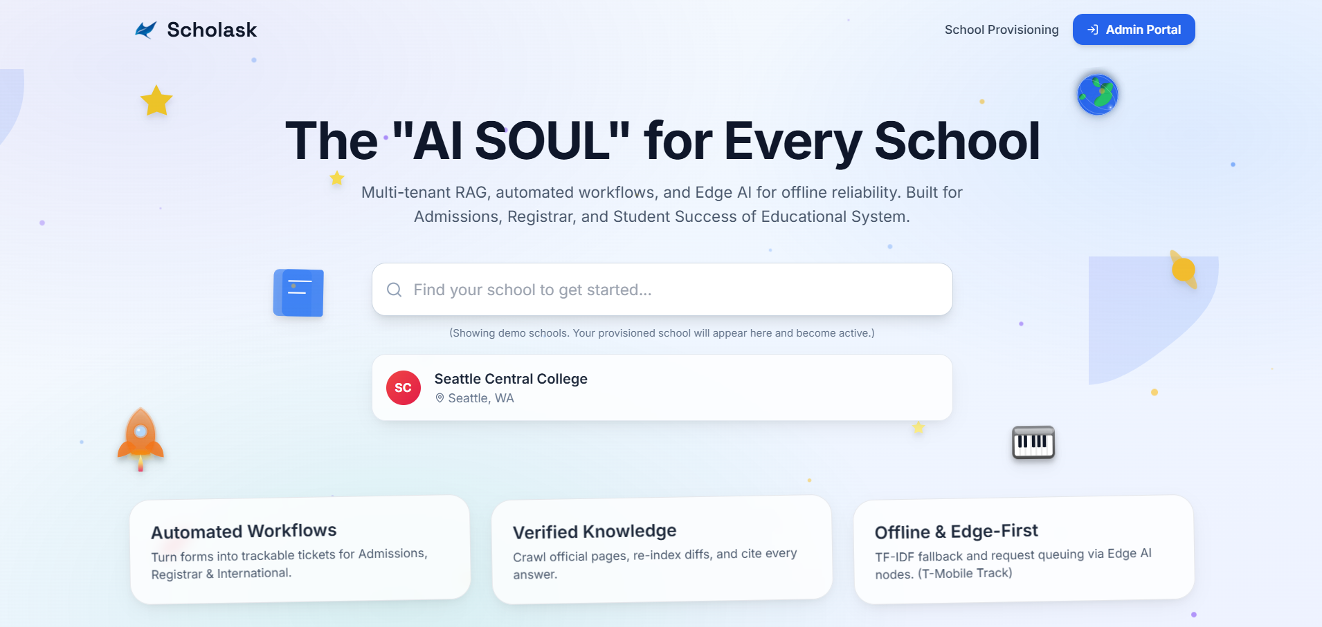 I have already submitted this for 2 times Inspiration What it does How we built it Challenges we ran into Accomplishments that we're proud of What we learned What's next for Scholask: The AI Soul of Every School in the Future Built With error Try it out scholask.vercel.app scholask.vercel.app