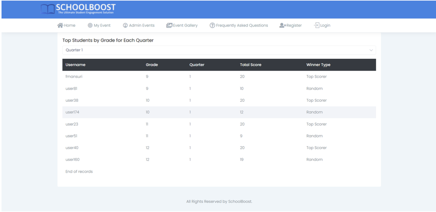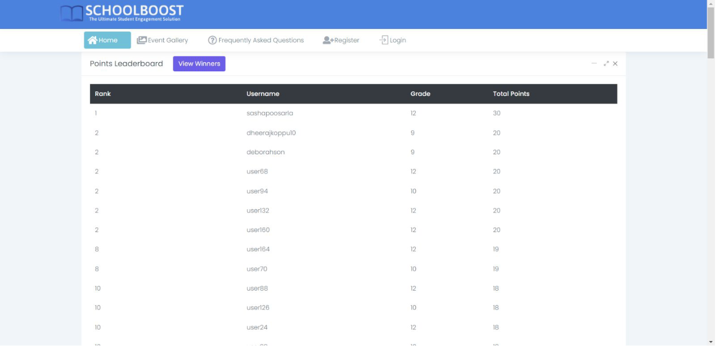 By continually improving and expanding SchoolBoost, I aim to provide an even more effective platform for fostering student involvement and enhancing the high school experience.