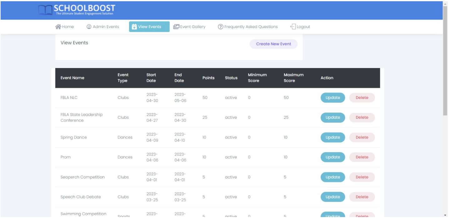 - View Events Page: Centralized page for administrators to create, update, and delete school events.