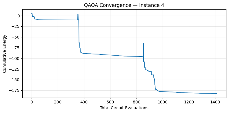A major practical issue was that full variational optimization on current public hardware access modes is still difficult. In particular, iterative QAOA optimization is naturally suited to session-style execution, while many hardware access paths are better suited to final sampling of already-optimized circuits than to hundreds of optimizer-in-the-loop calls.