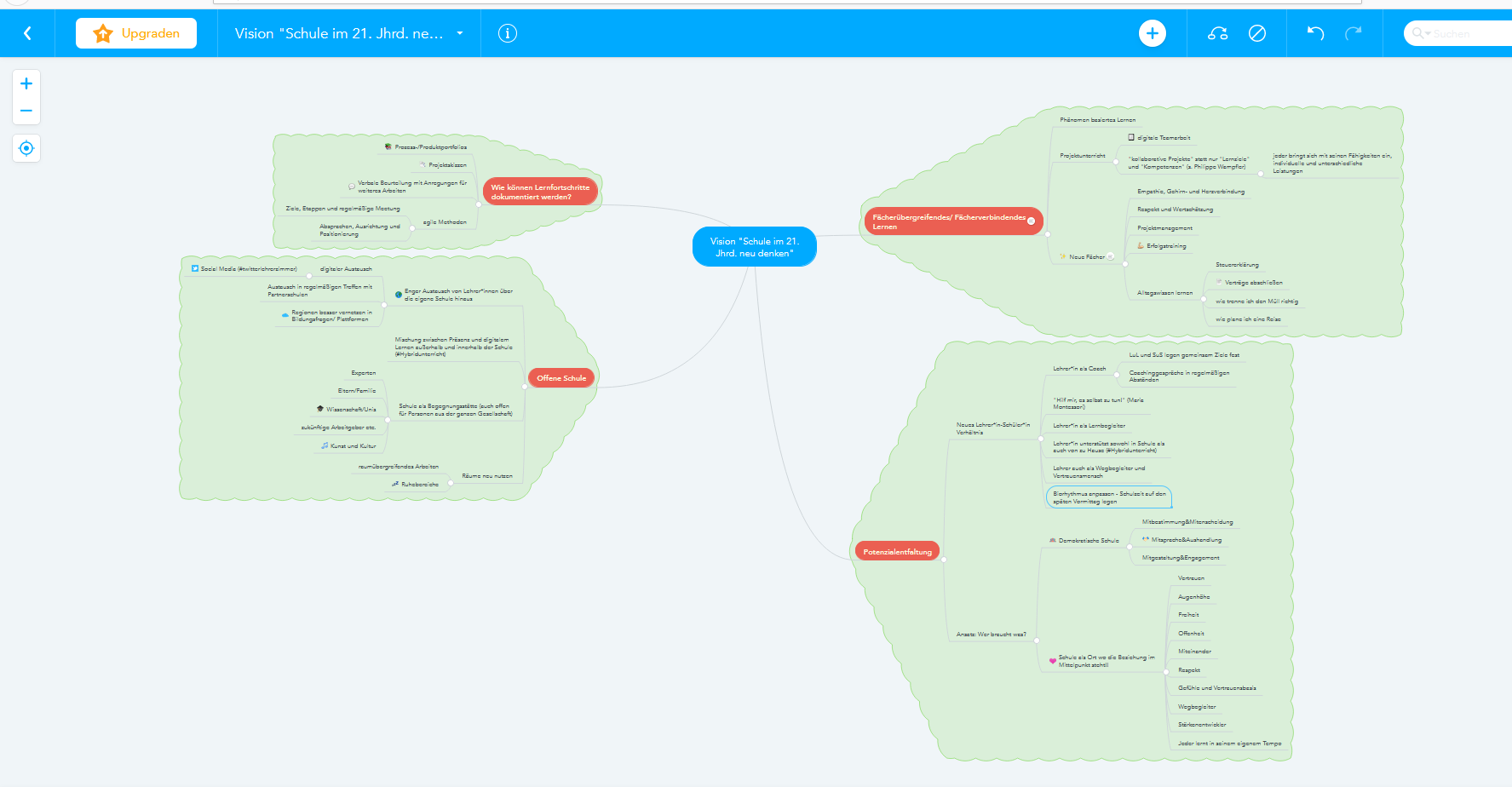Umsetzung: 1) Wir haben den Lehrplan entmüllt, um aufzunehmen, was in Gegenwart und Zukunft wichtig ist. Die Förderung der kognitiven Fähigkeiten korreliert dabei mit der Schulung von Empathiefähigkeit in der Auseinandersetzung mit Erfahrungen, Befürchtungen, Hoffnungen, zusätzlich der Wahrnehmung und Verarbeitung gesellschaftlicher, politischer und ökonomischer Herausforderungen der Gegenwart.