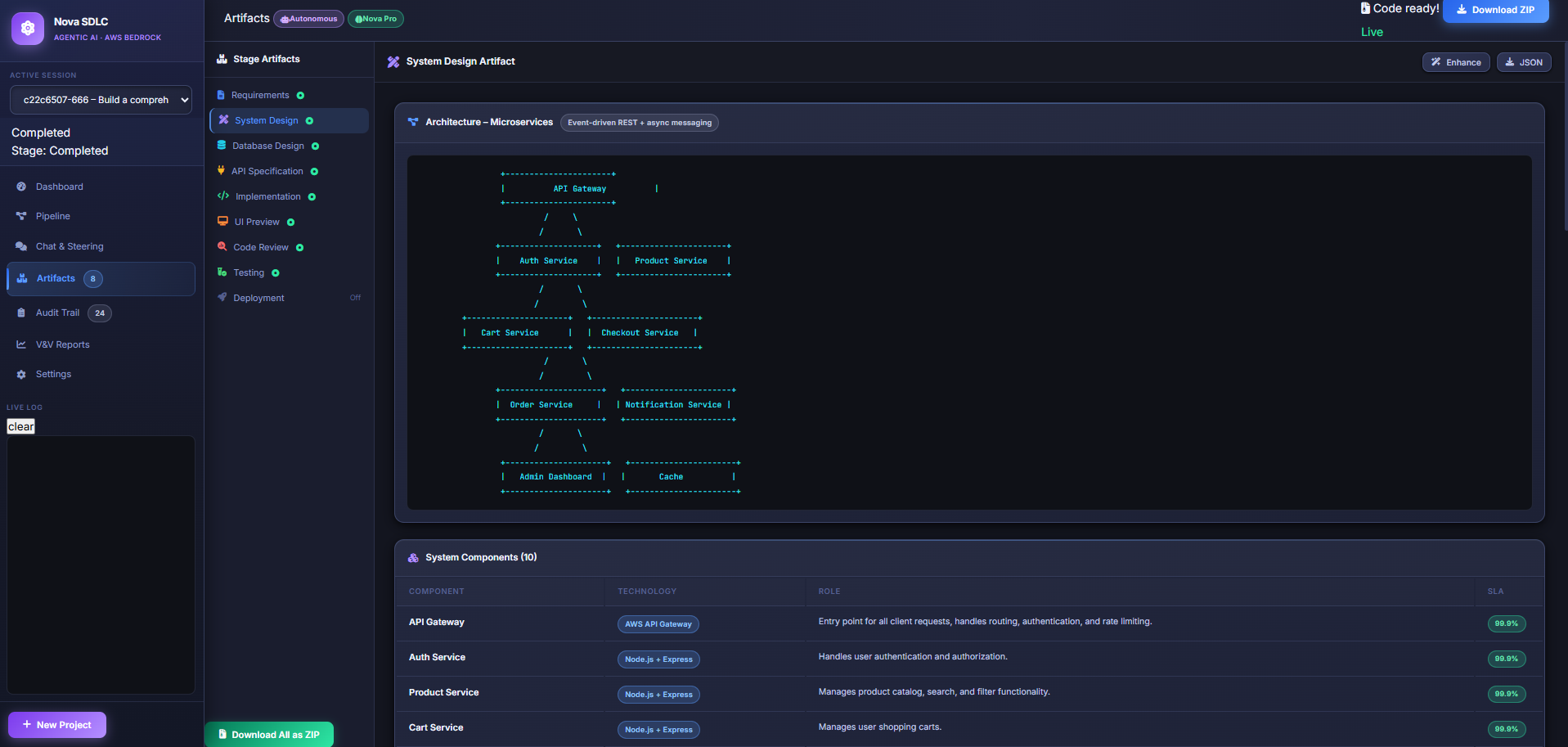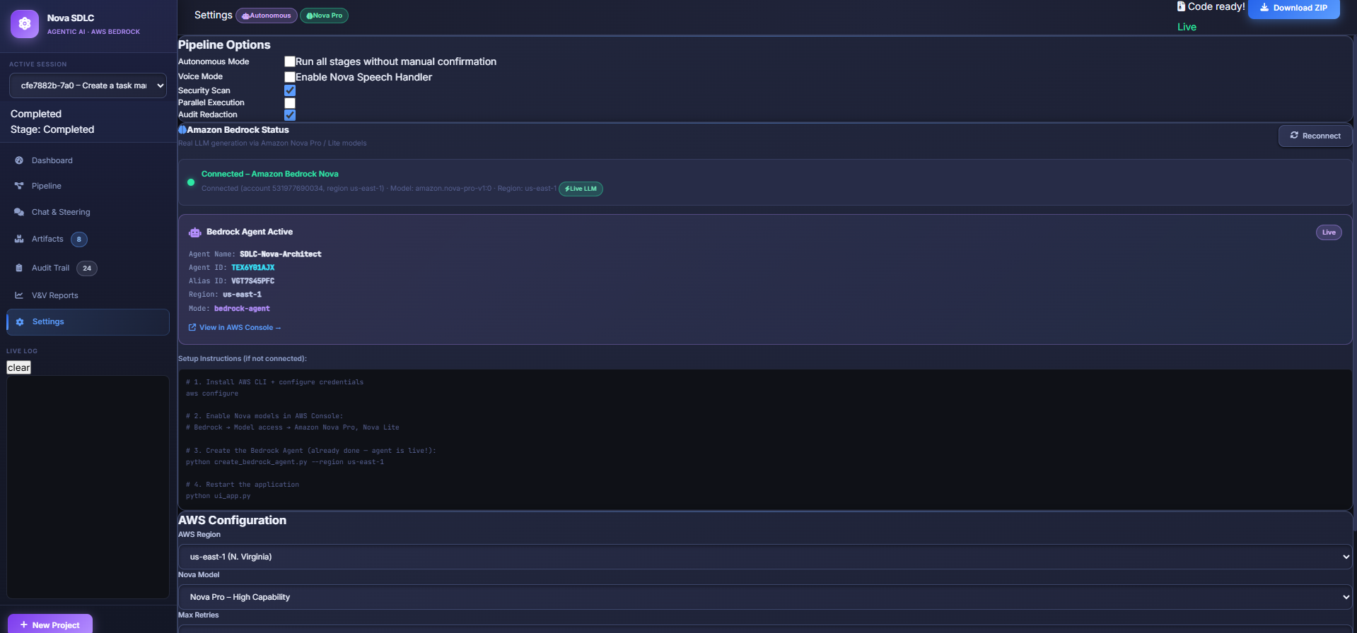 Inspired by the power of Amazon Nova models and Agentic AI, we built Nova SDLC Architect — a platform that transforms an idea, voice input, or whiteboard sketch into a production-ready software project within minutes.