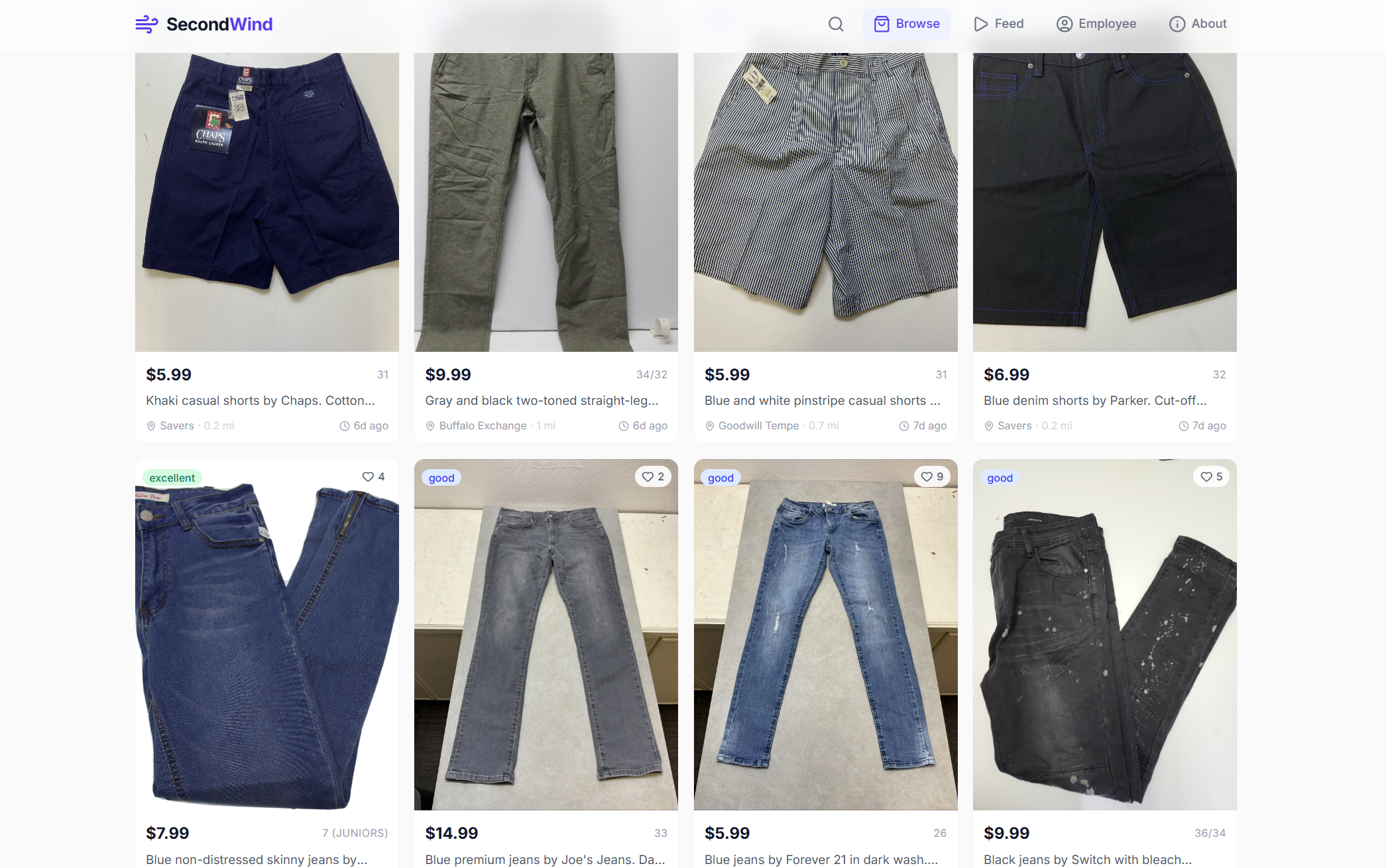The textile manufacturing industry produces 8–10% of all global emissions: more than aviation and shipping combined. 70–90% of donated clothes get sent to landfills or shipped overseas. It's not that people don't want to buy secondhand, it's just that nobody wants to drive to four thrift stores and spend hours sifting through racks. People want to scroll from their couch. Secondhand stores already have the inventory: thousands of items, priced low, sitting on racks with zero digital presence: no product IDs, no barcodes, no listings. I wondered: what if you could browse every thrift store within 10 miles the same way you shop online?