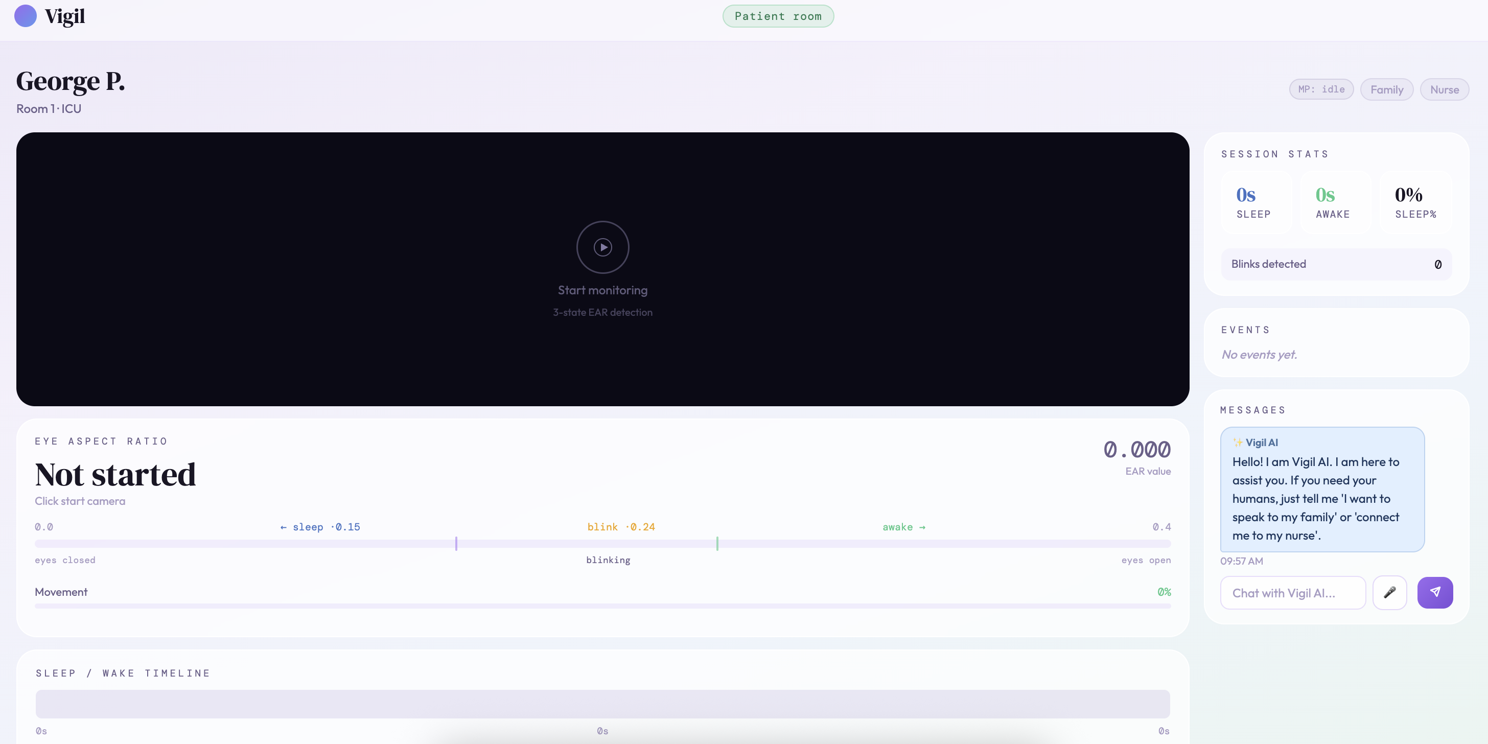Vigil is a patient monitoring and communication platform that detects when a patient is awake and enables timely connection with family and care teams.