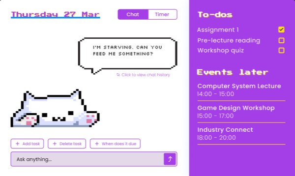 It connects with your Google Calendar, helps you manage your daily tasks with natural language, and ensures you are focused while you study by making sure youβre not messing with your phone ππ±