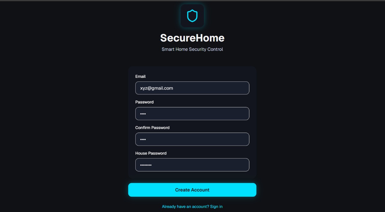 SecureHome signup interface with secure authentication and house-level access control