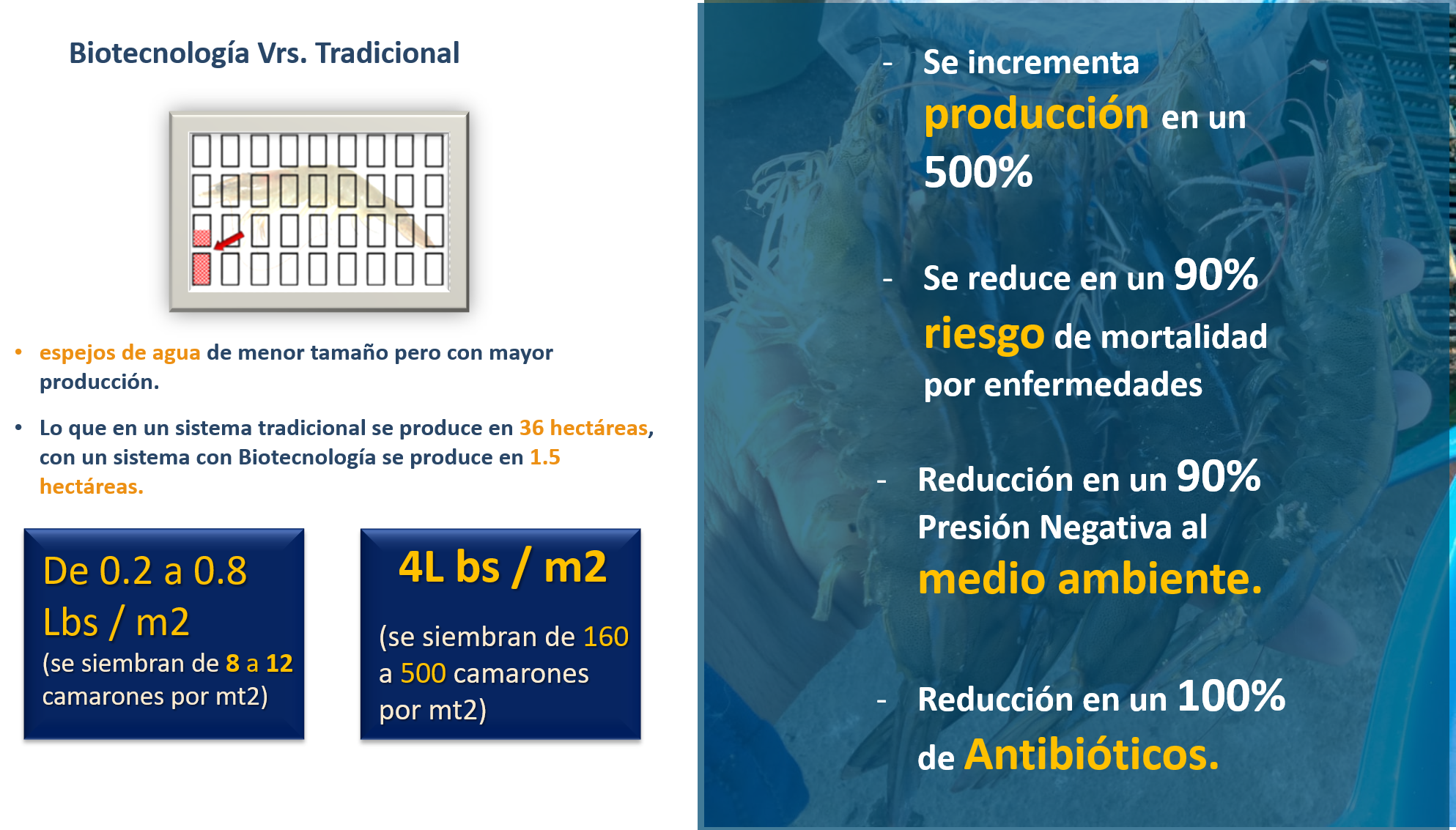 - Hemos logrado producir camarón ecológico completamente libre de antibióticos y aditivos.