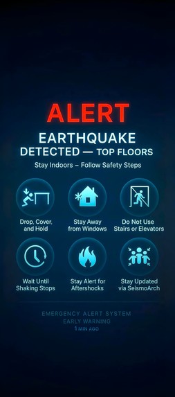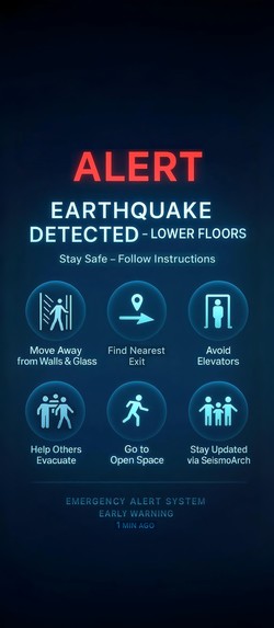 Mobile alert interface for lower-floor occupants, providing real-time earthquake warnings and location-specific safety instructions.
