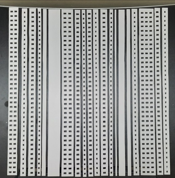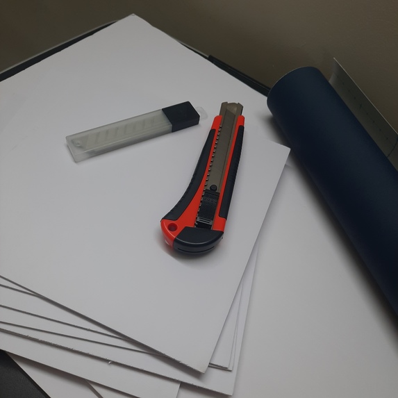 Manual fabrication process used to create structural components, foamboards and hand-cutting tools used during model construction.