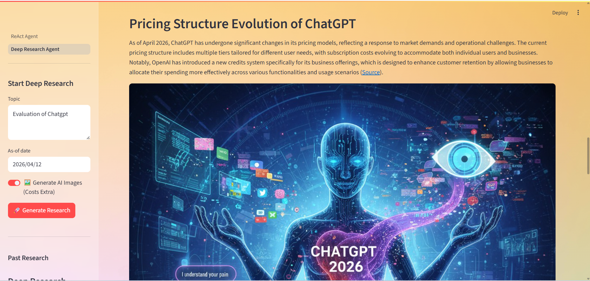 - Supports image generation during deep research workflows