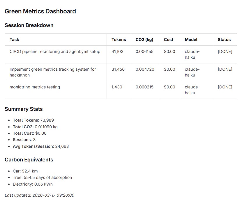 - Created a green metrics dashboard that quantifies the environmental impact of AI usage, promoting more responsible development practices
