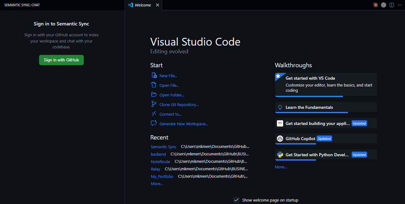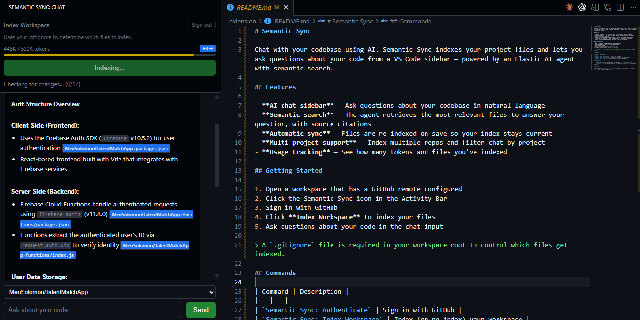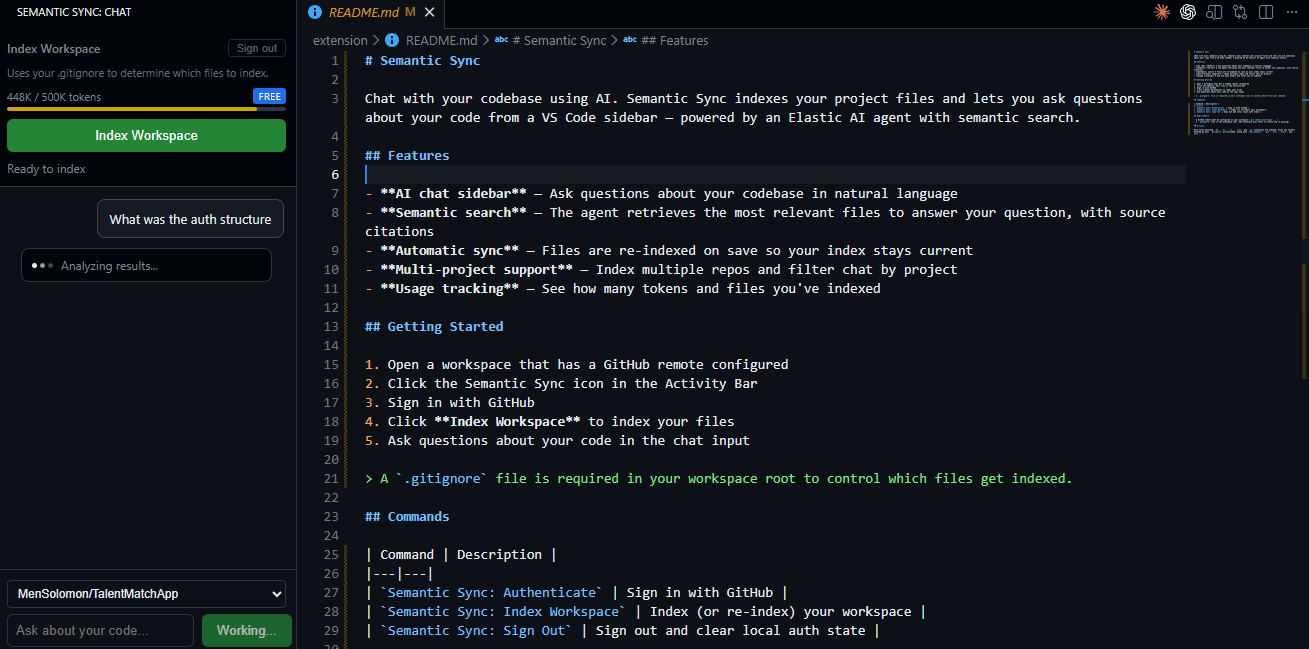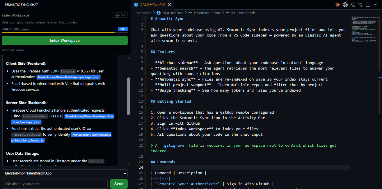 Semantic Sync is a VS Code extension that lets you index your workspace and chat with an AI that knows your code.