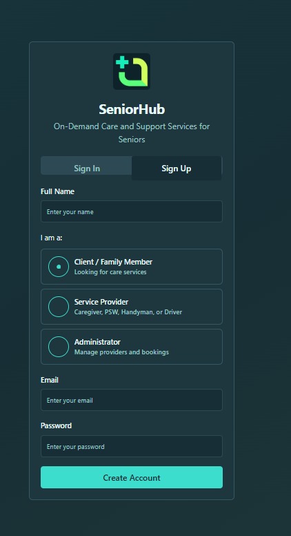 Aging shouldn’t mean losing independence. SeniorHub is a compassionate, Uber-like mobile app that connects senior citizens with trusted caregivers, personal support workers (PSWs), handymen, and accessible transportation — all in one tap. Our mission is to make daily living safer, easier, and more dignified for older adults while supporting caregivers with flexible work opportunities.