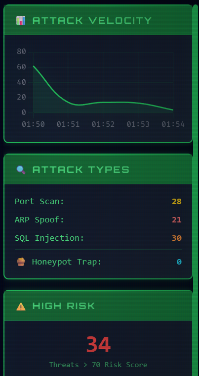Live "War Room": A Cyberpunk-style dashboard that visualizes attacks on a 3D globe, showing exactly where the hacker is sitting.
