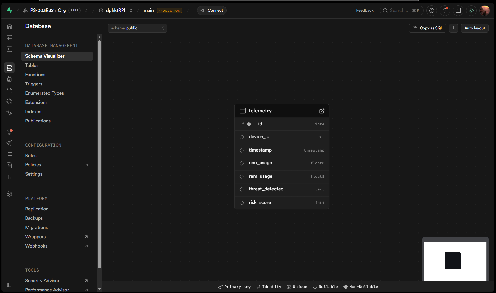 The Cloud Brain (Cognitive System): Database: We utilized Supabase (PostgreSQL) for its high-performance connection pooler. We used the psycopg2 library to inject secure, SSL-encrypted logs directly into the DB. Automation: We replaced complex server-side code with Make.com Webhooks, allowing us to route data to Slack and Salesforce simultaneously.