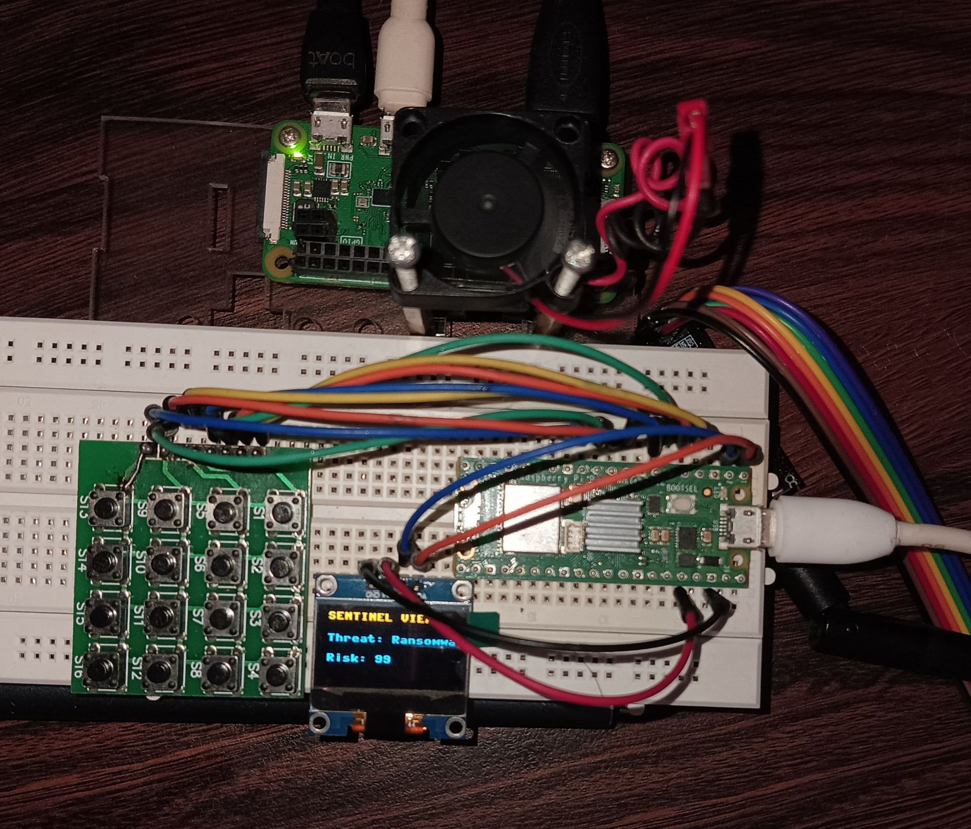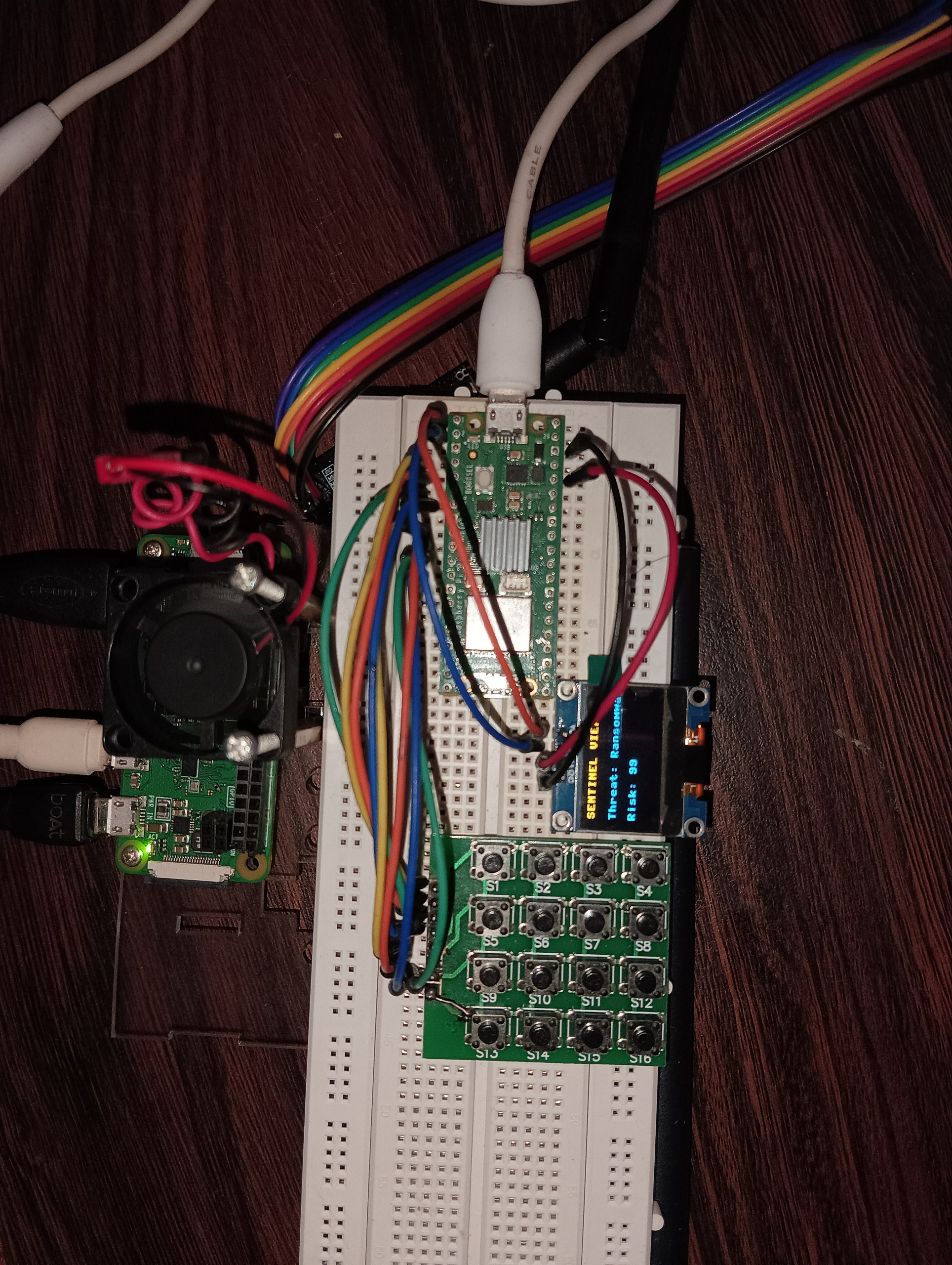 AI Risk Analysis: We plan to integrate a Machine Learning model (using TensorFlow Lite on the Pi Zero) to analyze the frequency of keypresses and dynamically calculate the Risk Score R based on attack patterns, rather than hardcoded values. Wireless Edge Nodes: We want to upgrade the Pico to a Pico W to remove the USB cable, allowing us to place "Sensor Nodes" all over a building that report back wirelessly to the central Gateway. Biometric Authentication: Adding a fingerprint sensor to the hardware to ensure that only authorized security personnel can clear or acknowledge a threat from the physical device.