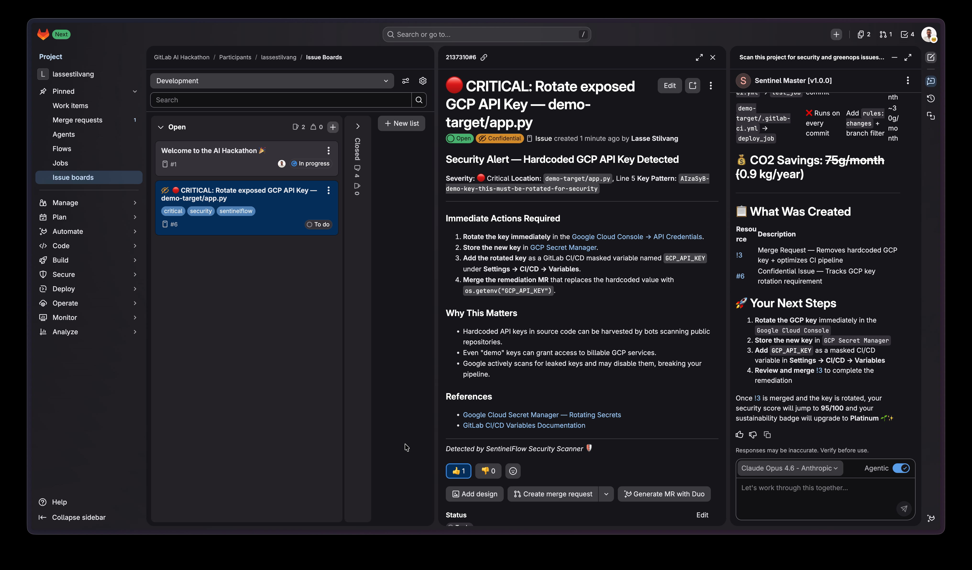 I built SentinelFlow entirely within the GitLab Duo Agent Platform.