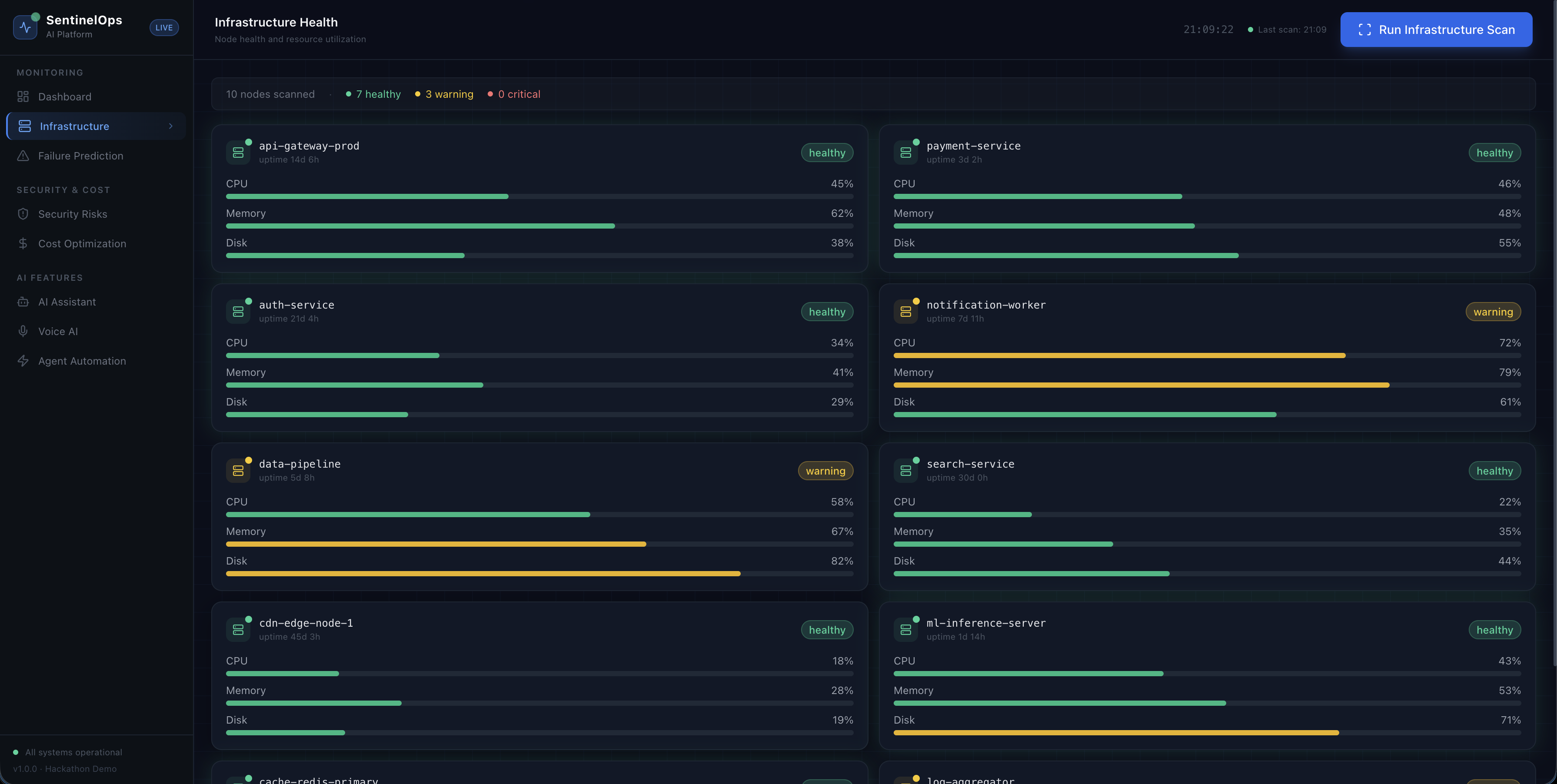 SentinelOps recognizes complex patterns, predicts cascading failures, and acts before outages occur.