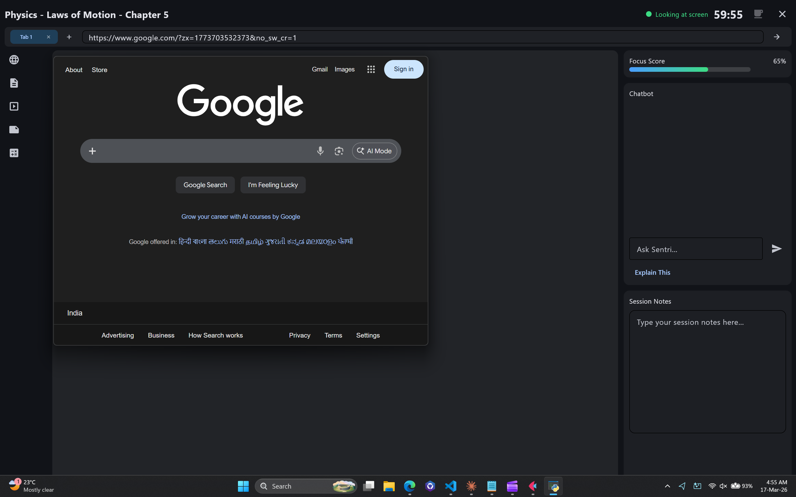 - Smart browser guard — evaluates whether the pages you browse during a session are relevant to your study goal, using Nova to classify and block distractions