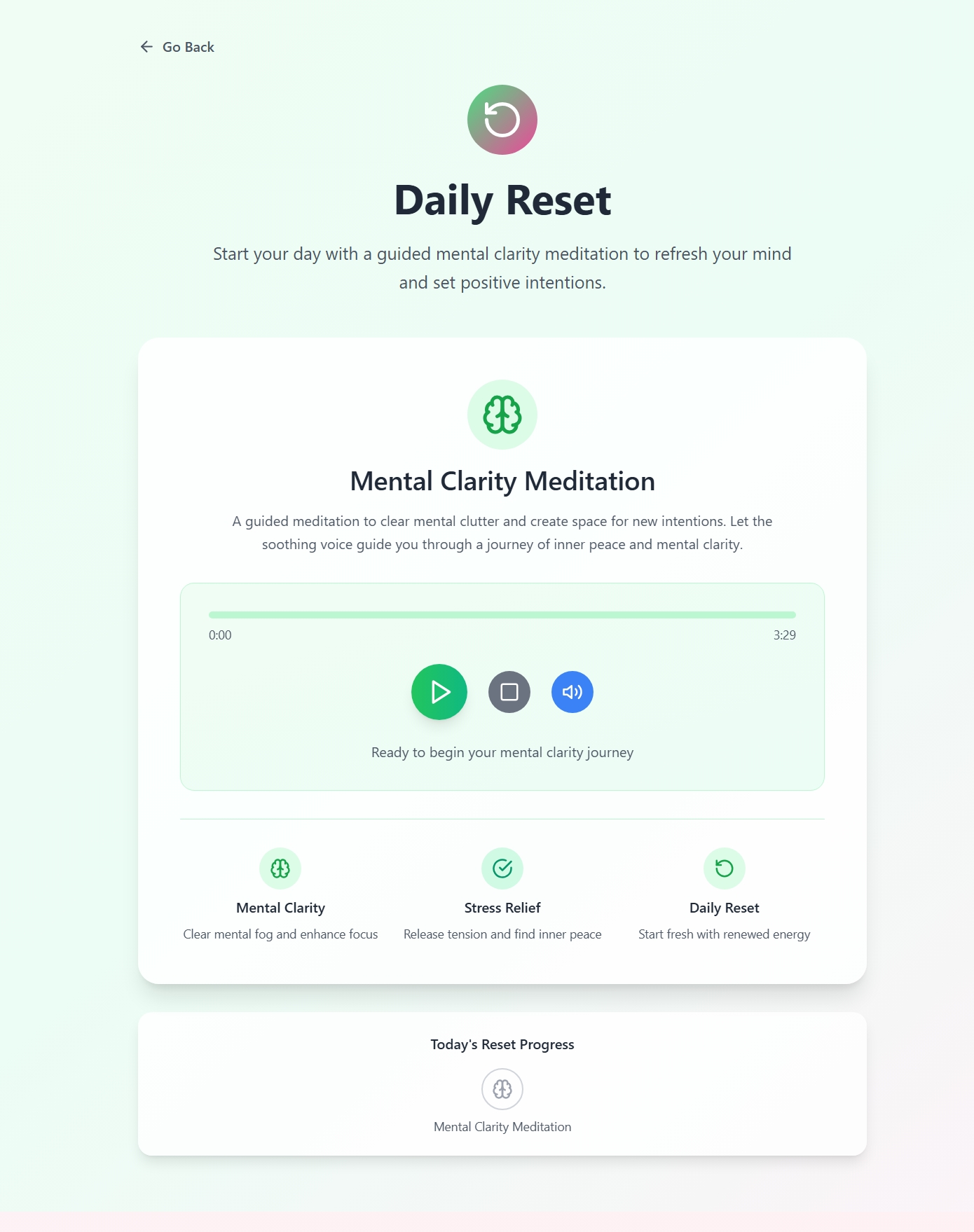 - Mood-based sessions: Let users select how they’re feeling and guide them with personalized breathing patterns or affirmations.
