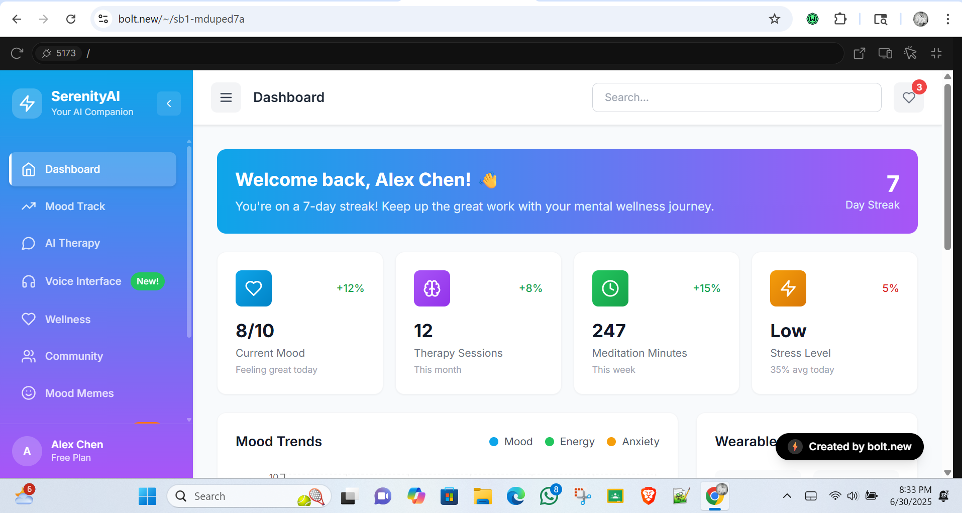 Inspiration SerenityAI was born from our team's shared frustration with mental healthcare barriers. When one founder struggled to get timely therapy during a crisis (facing 3-month waitlists), we realized AI could bridge this gap. Research shocked us: while 1 in 5 adults experience mental illness, 56% receive no treatment due to cost, stigma, or provider shortages. We envisioned an AI that doesn't just respond - but truly understands emotional pain like a human would.
