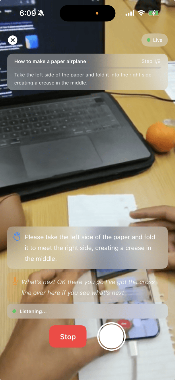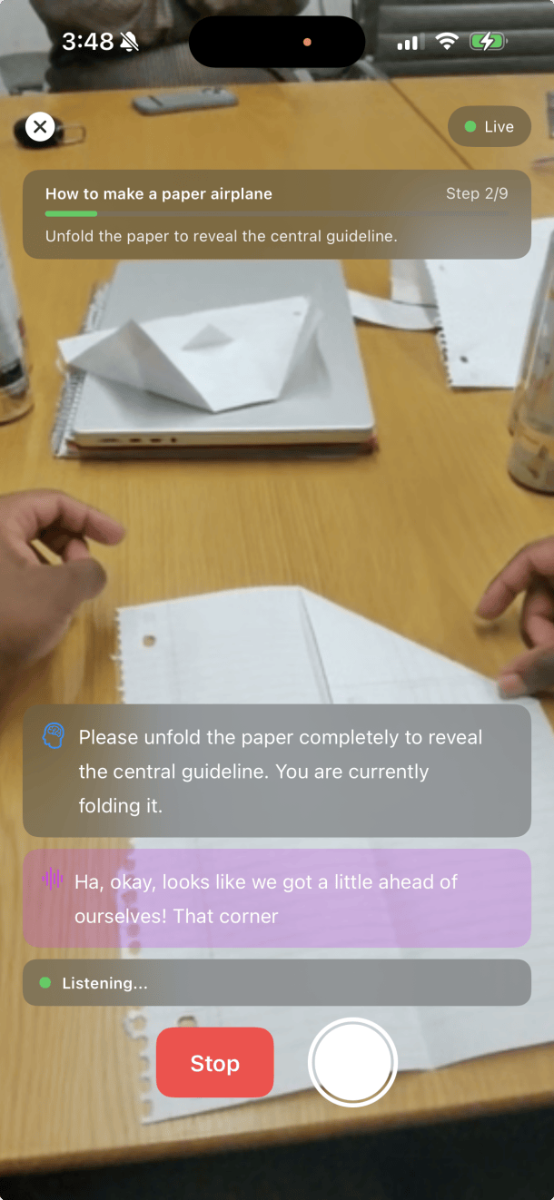 Learners wear Meta AR glasses, allowing them to remain completely hands-free while a unified Vision & Voice agent provides real-time, proactive feedback. It doesn't just show you what to do; it watches you do it and corrects your mistakes the moment they happen, effectively creating a "shadow" mentor that can be in a thousand places at once.