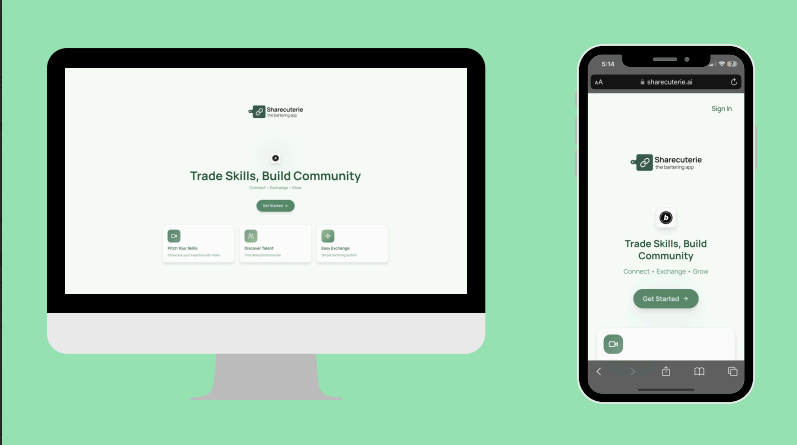 ShareCuterie was inspired by the growing gig economy and the ancient practice of bartering, reimagined for the digital age. In a world where everyone has unique skills but not always the cash to pay for services they need, we saw an opportunity to create a platform that facilitates skill exchanges, particularly after the pandemic highlighted how communities could support each other through non-monetary exchanges. The name "ShareCuterie" plays on the concept of a charcuterie board - a diverse arrangement of complementary offerings that create something greater than the sum of their parts - envisioning a marketplace where a graphic designer could trade logo design for yoga classes, or a language tutor could exchange lessons for home repairs, making skill-sharing as easy and trustworthy as traditional commerce.