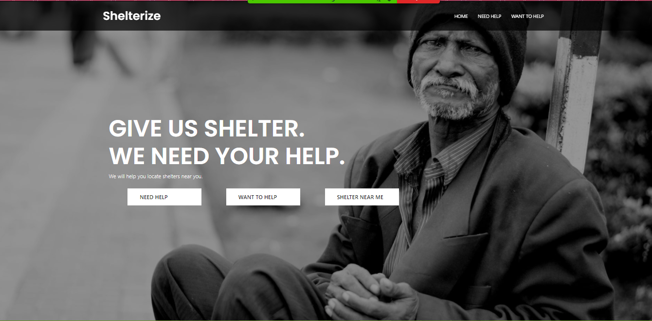 This Web Application aims at providing shelter to the victims hit by natural calamities. It will help the victims to find nearby shelters where they can take refuge. It will also provide a platform to all the NGOs where they can easily approach the people in dire need.