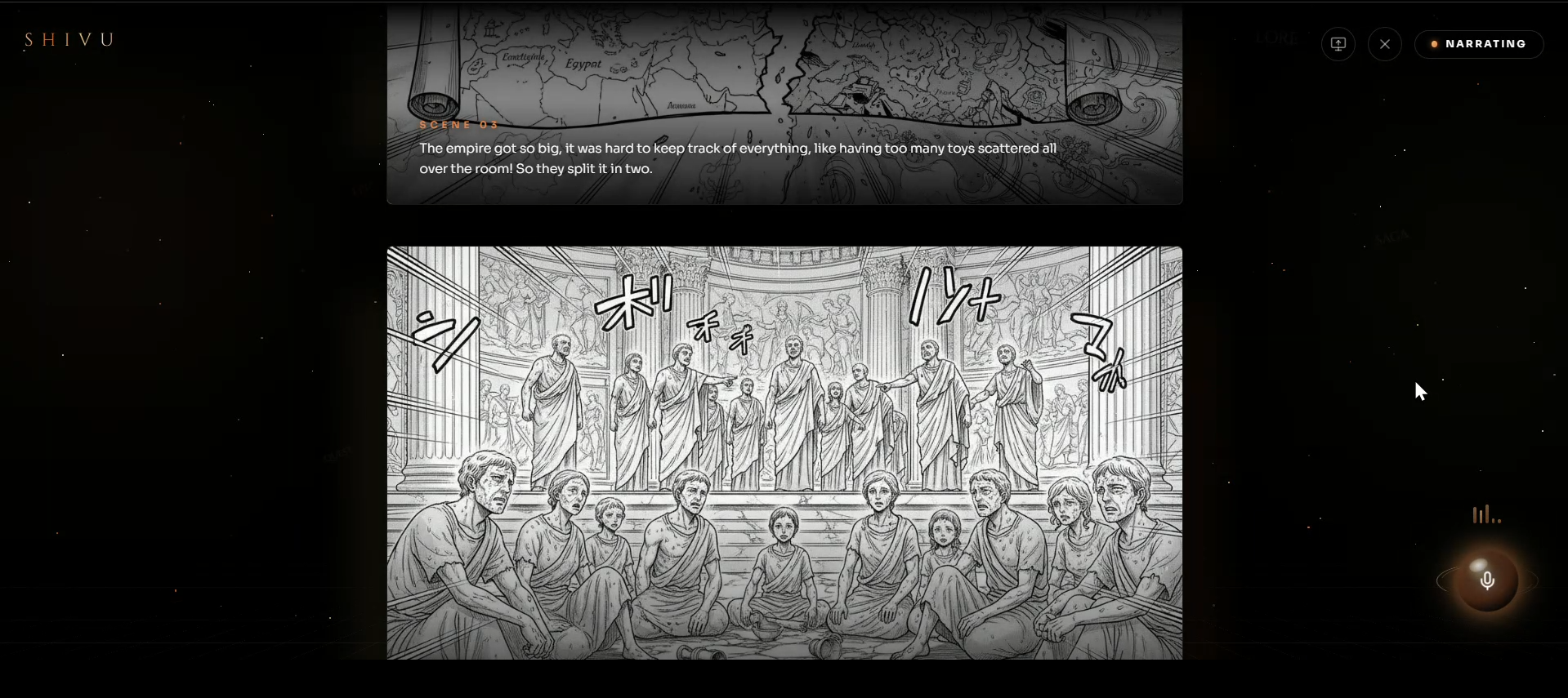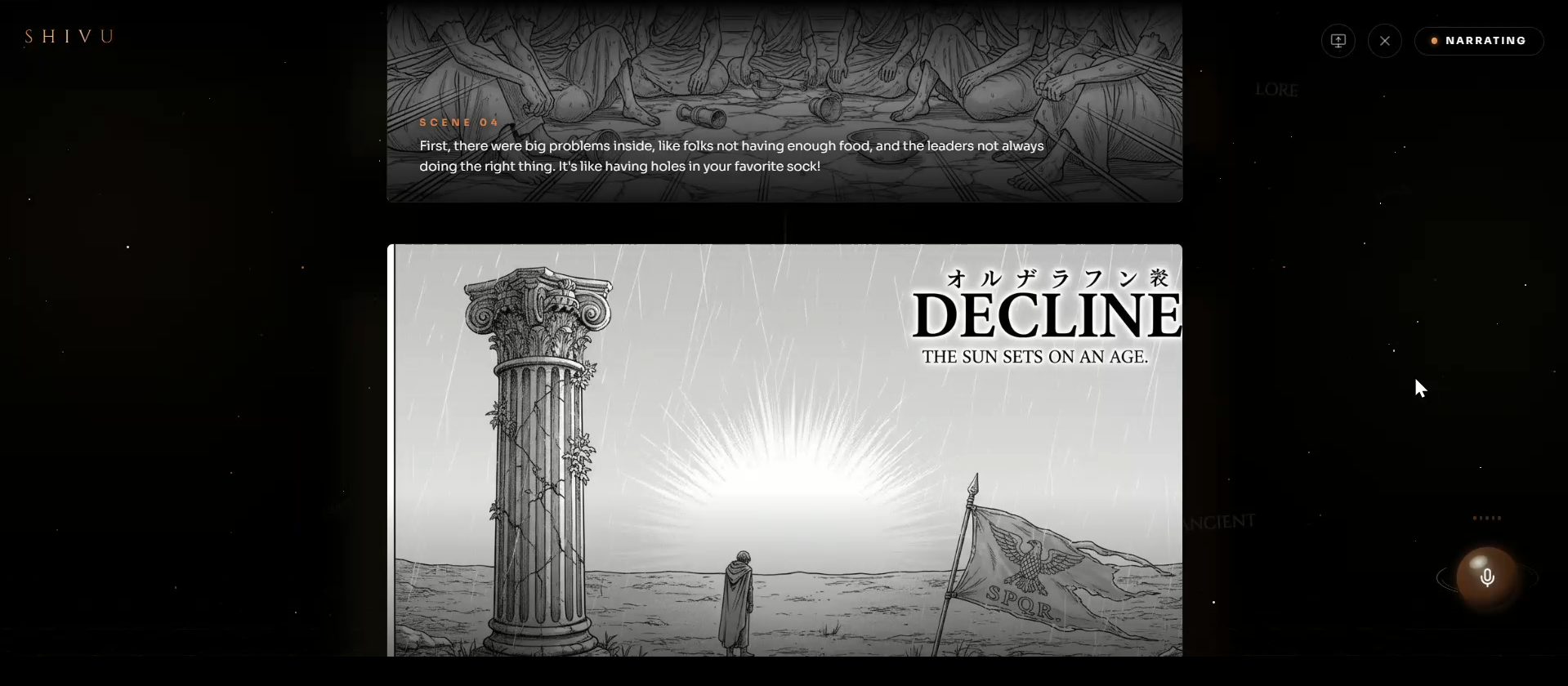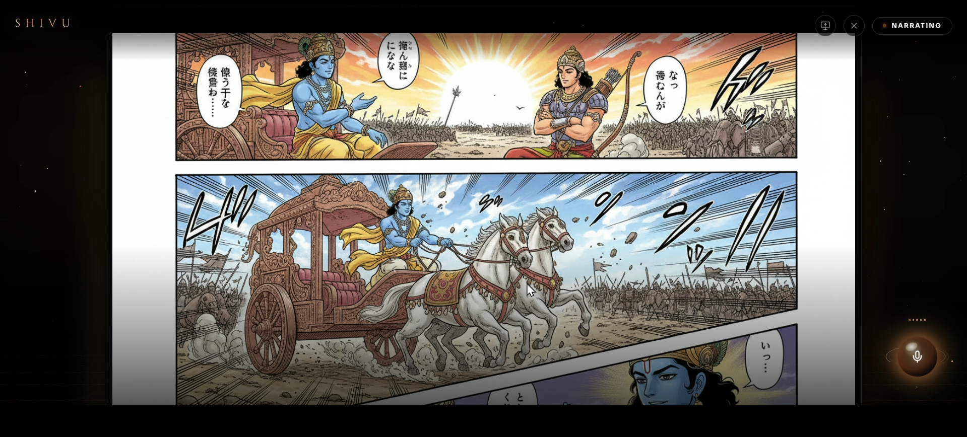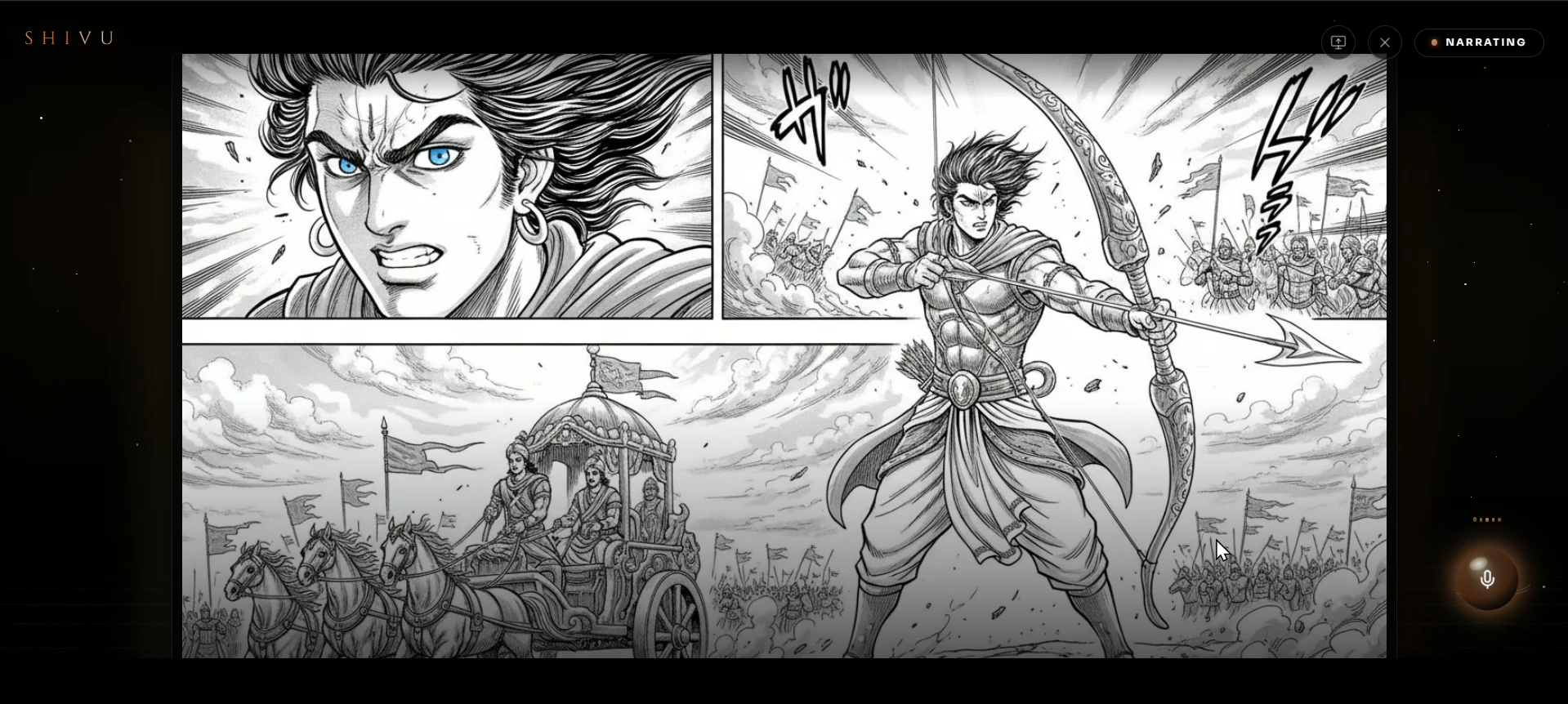 Ancient myths and epics, like the Mahabharata, were originally passed down through the oral tradition—told by master storytellers around a fire. We wanted to bring this ancient experience into the modern era. Our inspiration was to combine the immersive, dramatic power of a live storyteller with the visual excitement of modern manga and comic books. We asked ourselves: What if an AI could not only tell you a mythic story with real emotion but also draw a comic book of it in real-time as you listen?